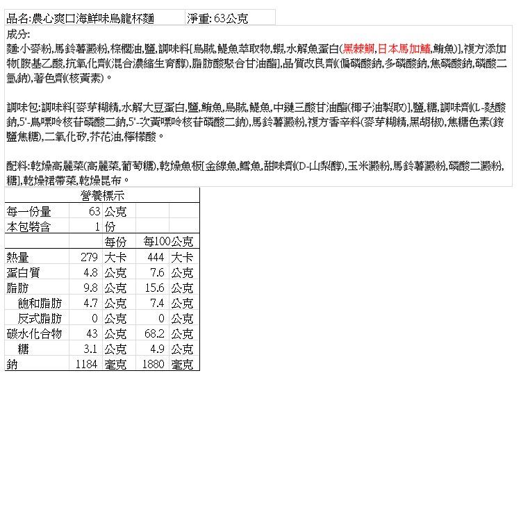 韓國 農心 爽口海鮮味 烏龍杯麵(63g) 烏龍麵 韓國泡麵 方便麵 即食 泡麵 宵夜 露營【小三美日】DS026676單一Instant Noodles小三美日