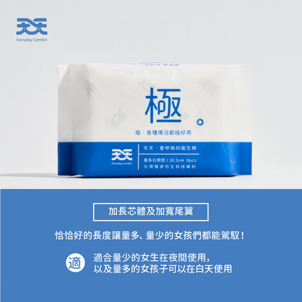 【天天衛生棉】瞬吸乾爽-量多日用型-28.5cm(8片/包)單包Feminine Care天天防護口罩