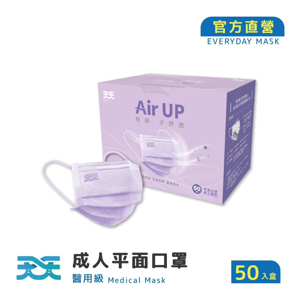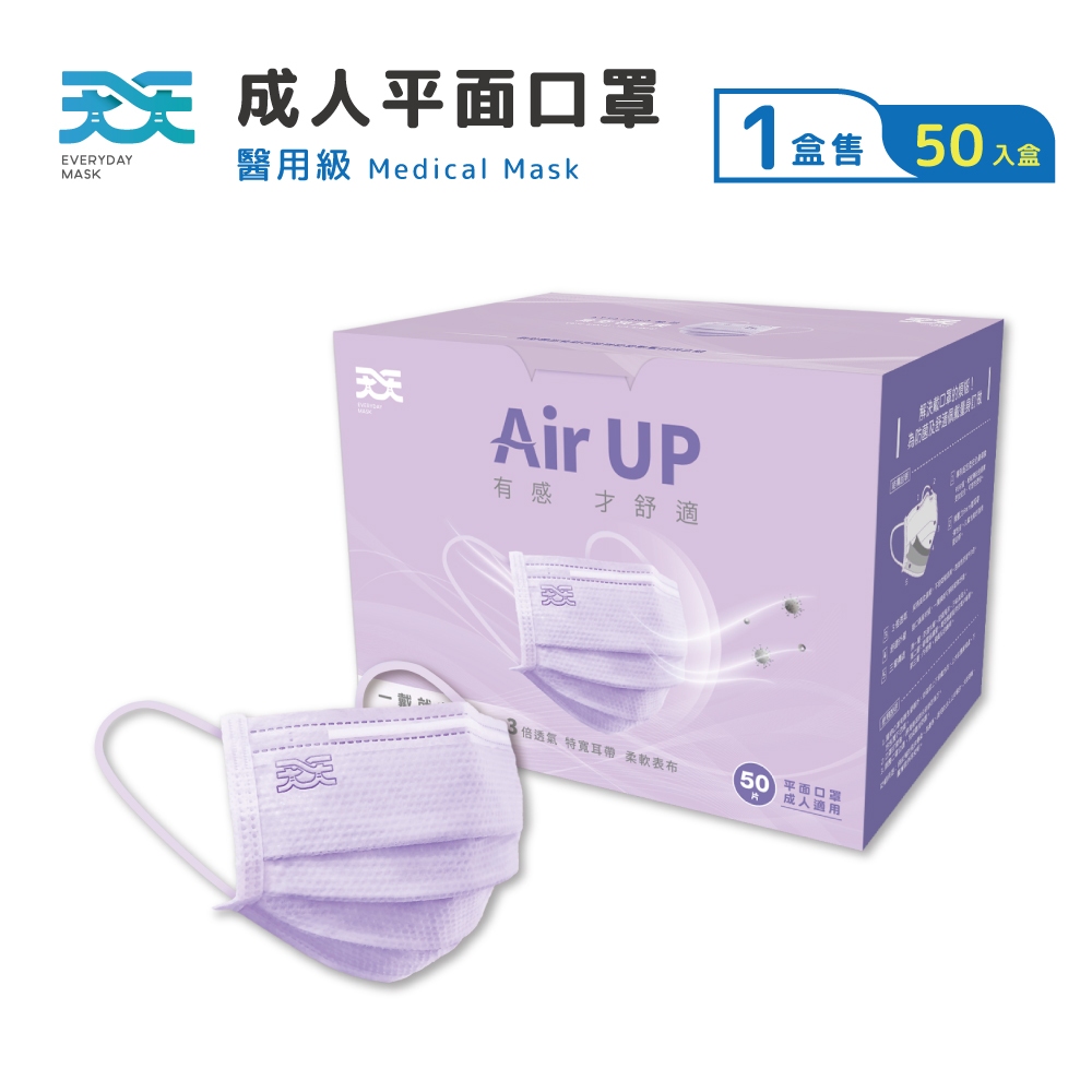 【天天】成人平面醫用口罩 紫色 (50入/盒)【天天】成人平面醫用口罩 紫色 (50入/盒)Medical Gloves & Masks天天防護口罩