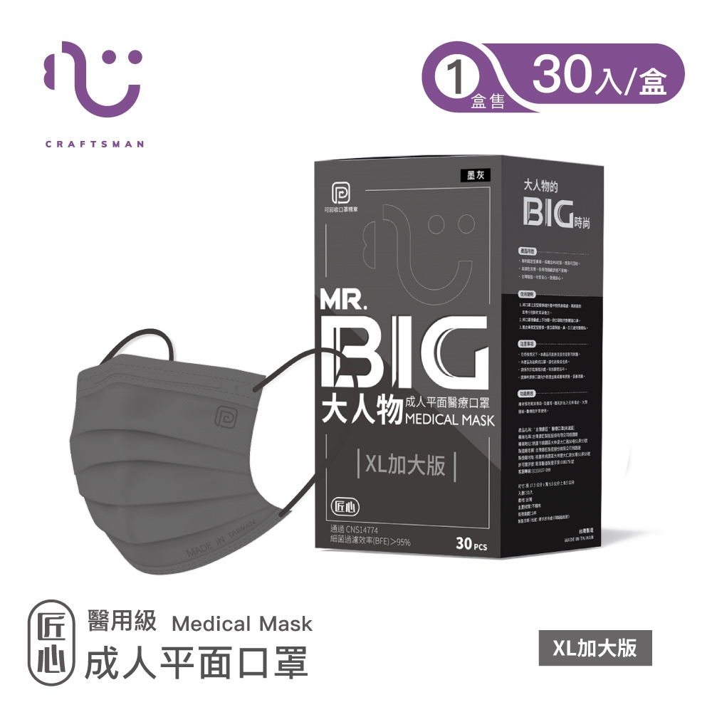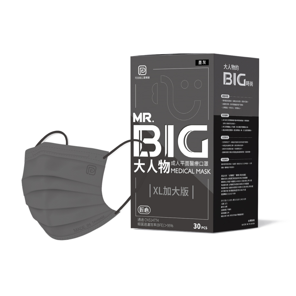 【匠心】可回收-MR.BIG大人物成人平面醫療口罩 墨灰 30入/盒 (適合成人較大臉型)【匠心】可回收-MR.BIG大人物成人平面醫療口罩 墨灰 30入/盒 (適合成人較大臉型)Medical Gloves & Masks天天防護口罩