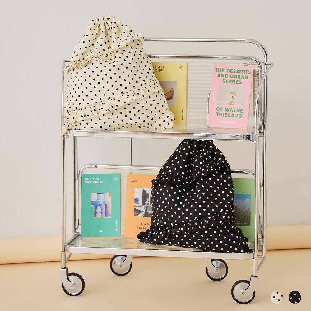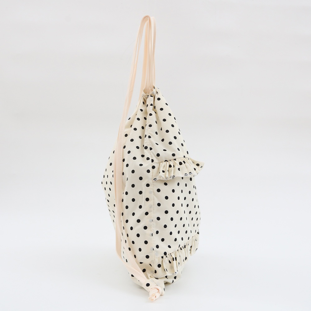 天藍小舖-黑白小圓點荷葉邊束口後背包-共2色-A12122302米白|黑色天藍小舖 SkyBlue