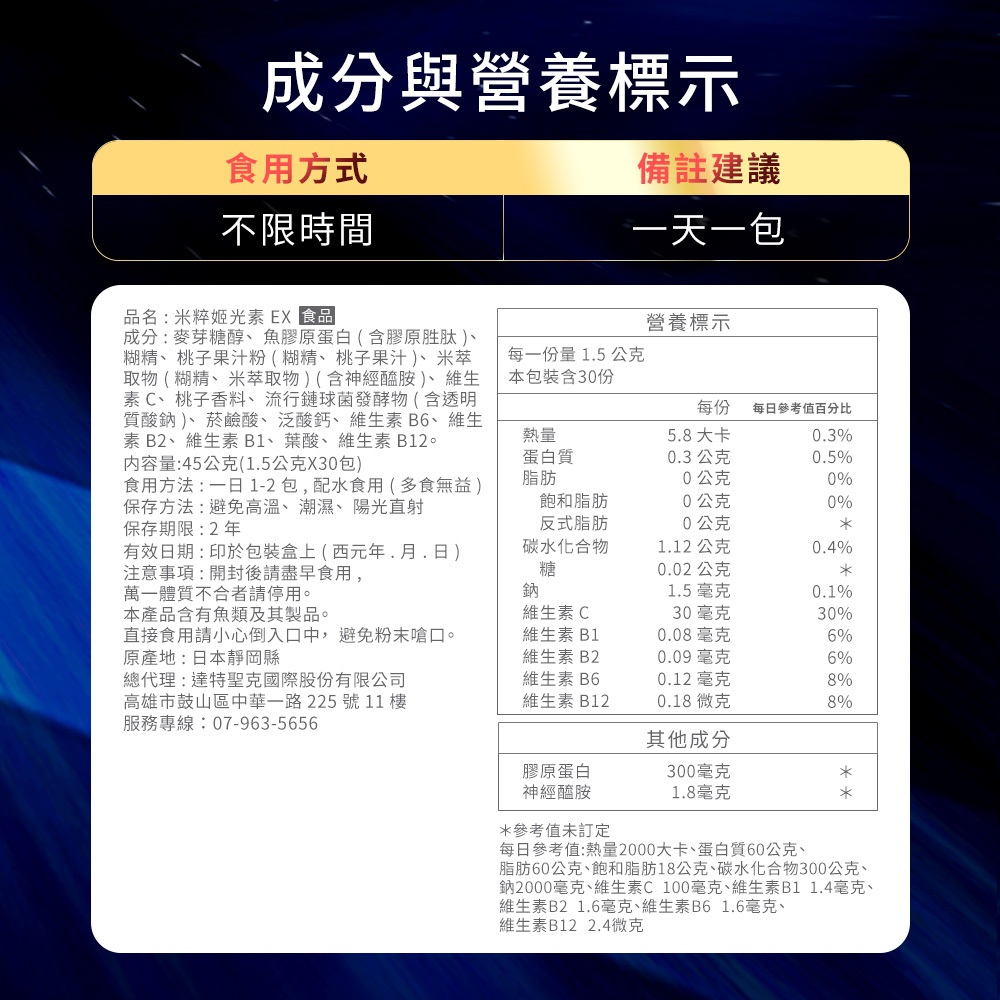 米粹姬光素EX(植物性) 限定價 1.5g x 30包入1.5gx30包入Well Being天幕網路商店