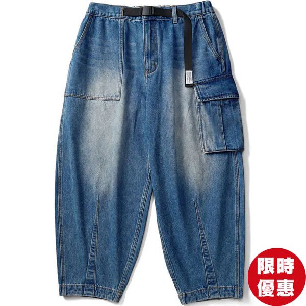 FILTER017 DENIM POCKET WIDE TAPERED PANTS 不對稱拼接 錐形軍褲 (水洗丹寧色)水洗丹寧色,S|水洗丹寧色,M|水洗丹寧色,L|水洗丹寧色,XLPants化學原宿 Chemistry