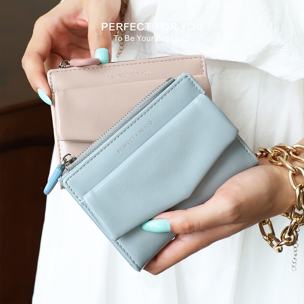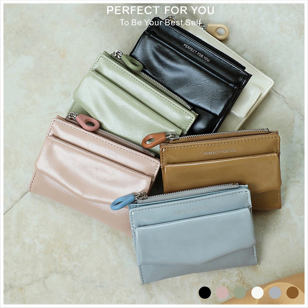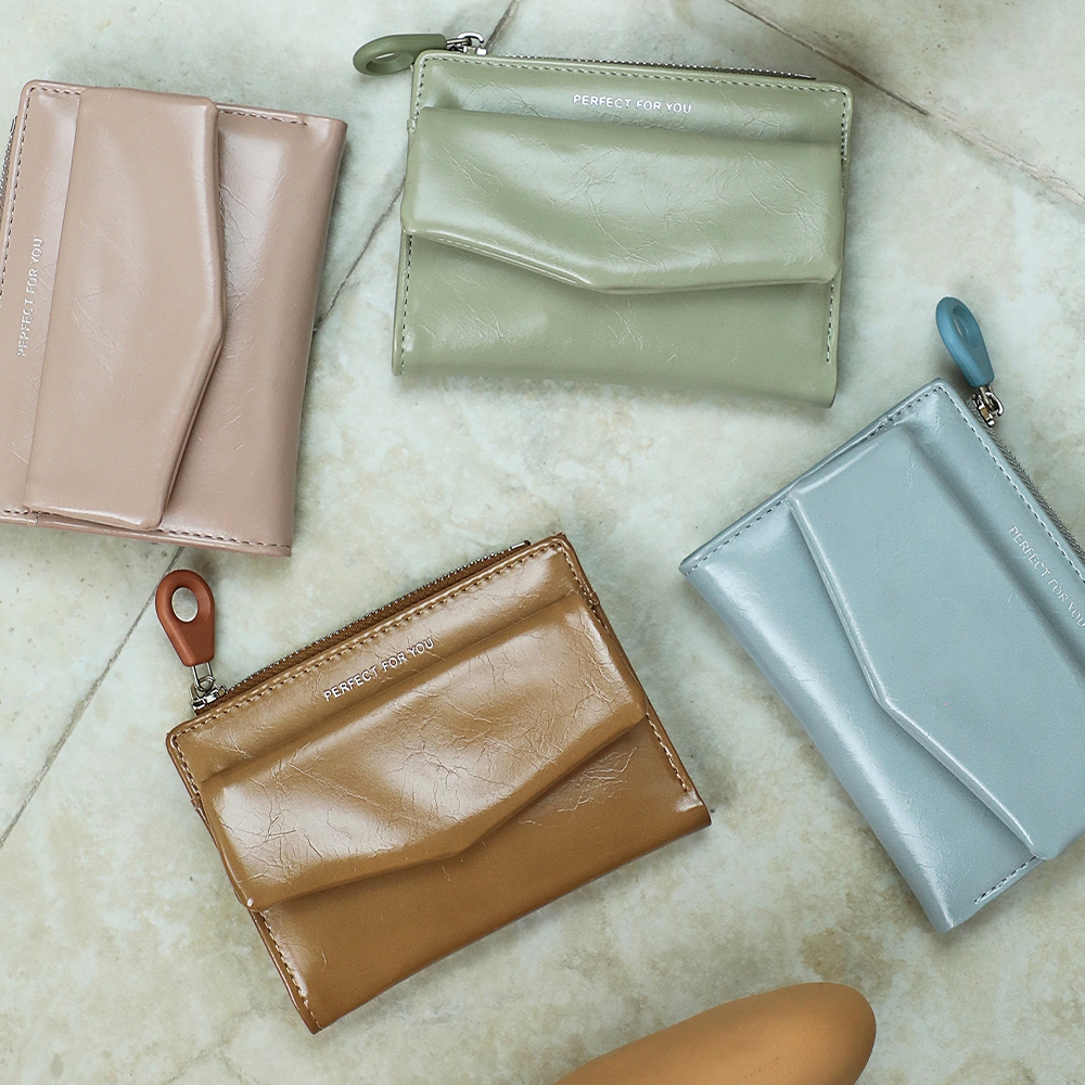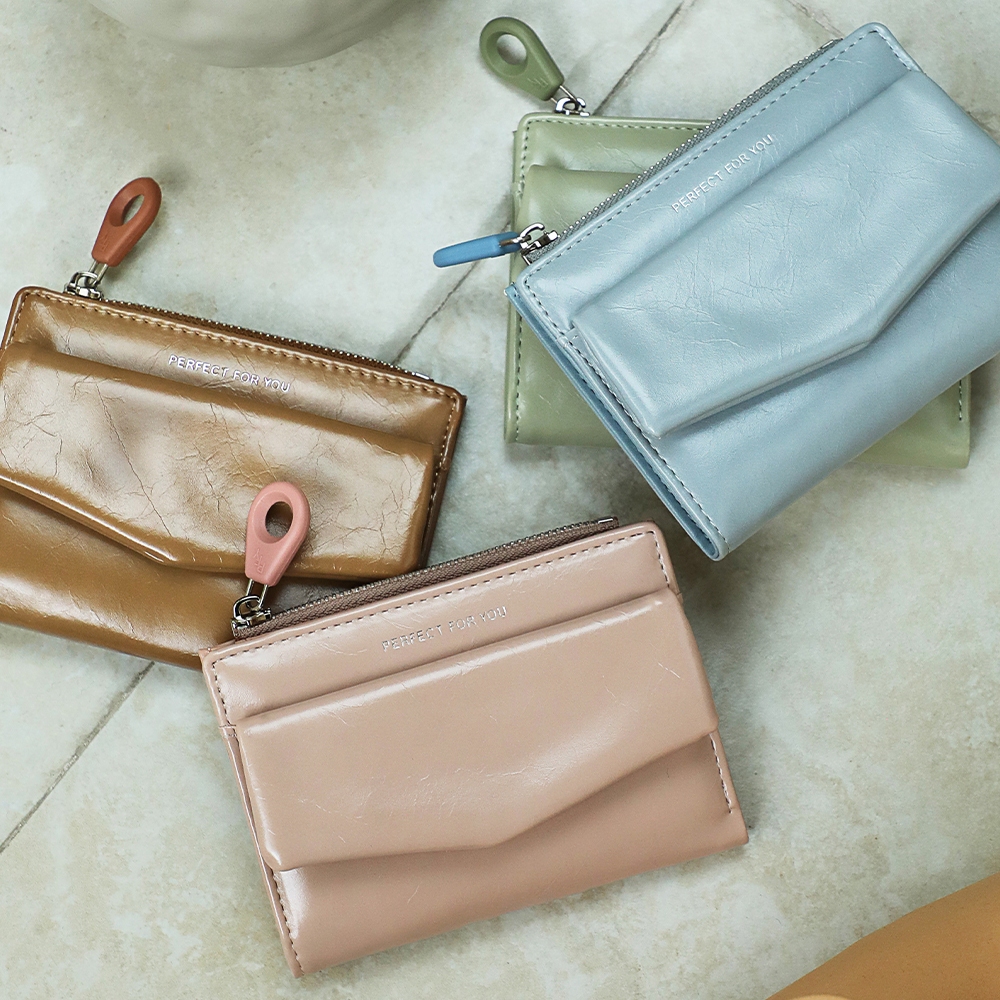 天藍小舖-光澤皮革信封造型中夾-共6色-A08081873綠色|藍色|米白|粉色|棕色|黑色Bifold & Trifold Wallets天藍小舖 SkyBlue