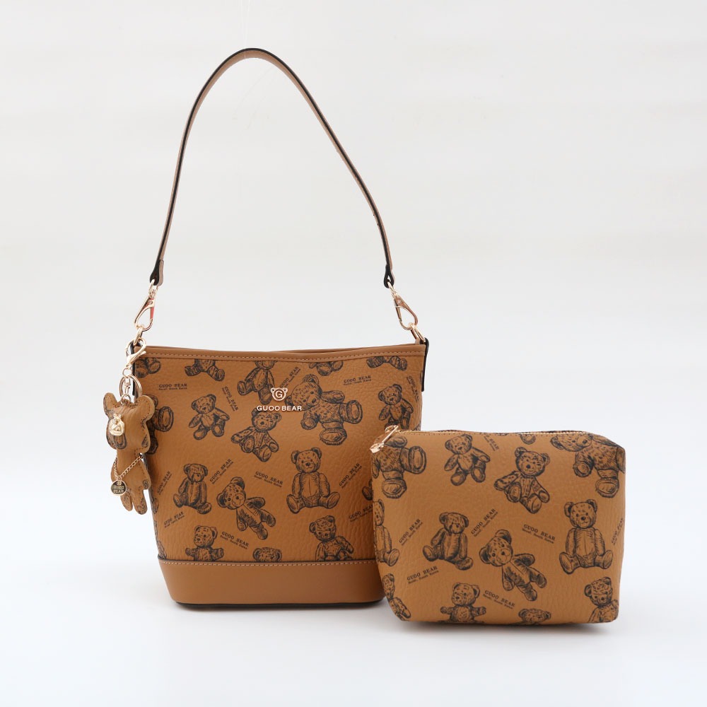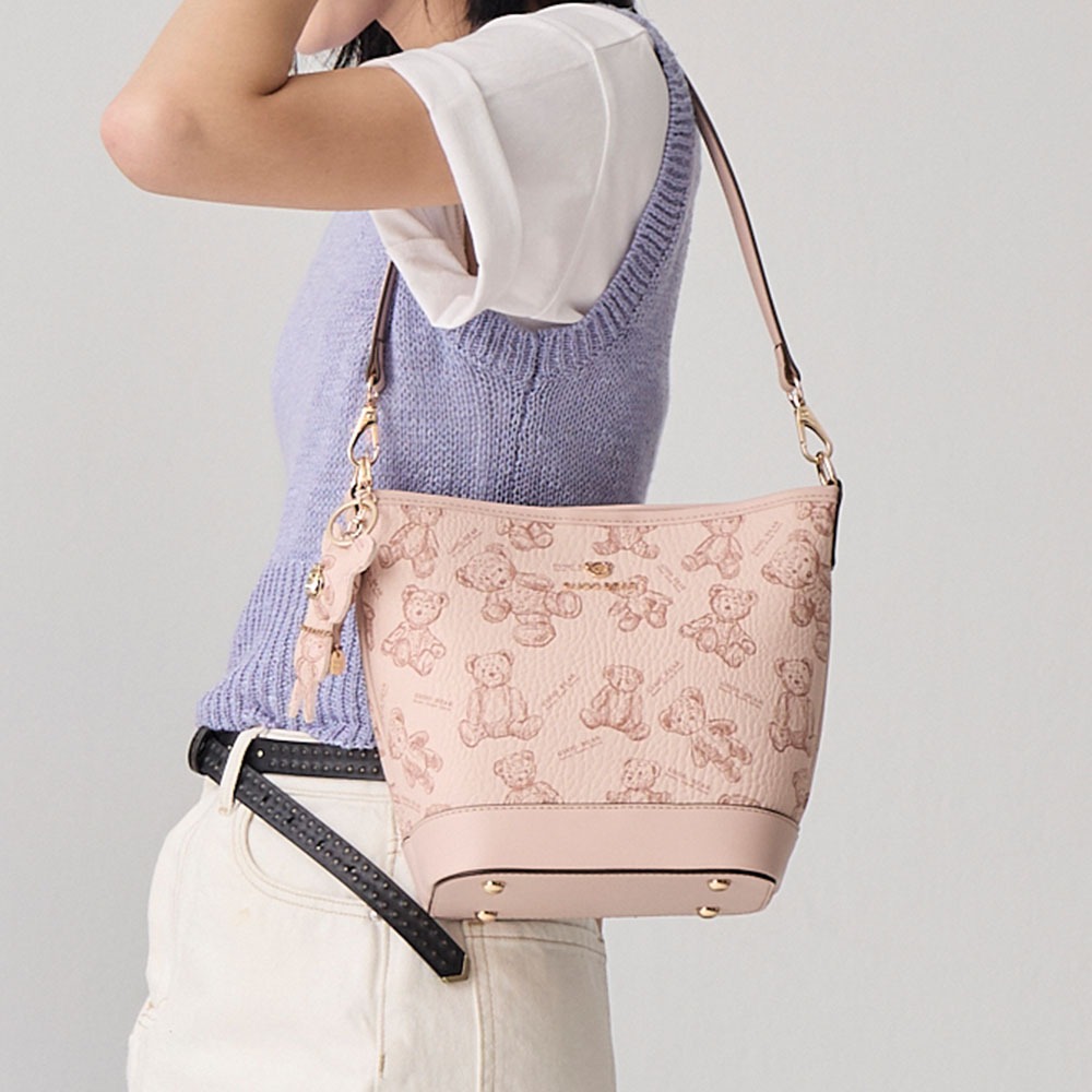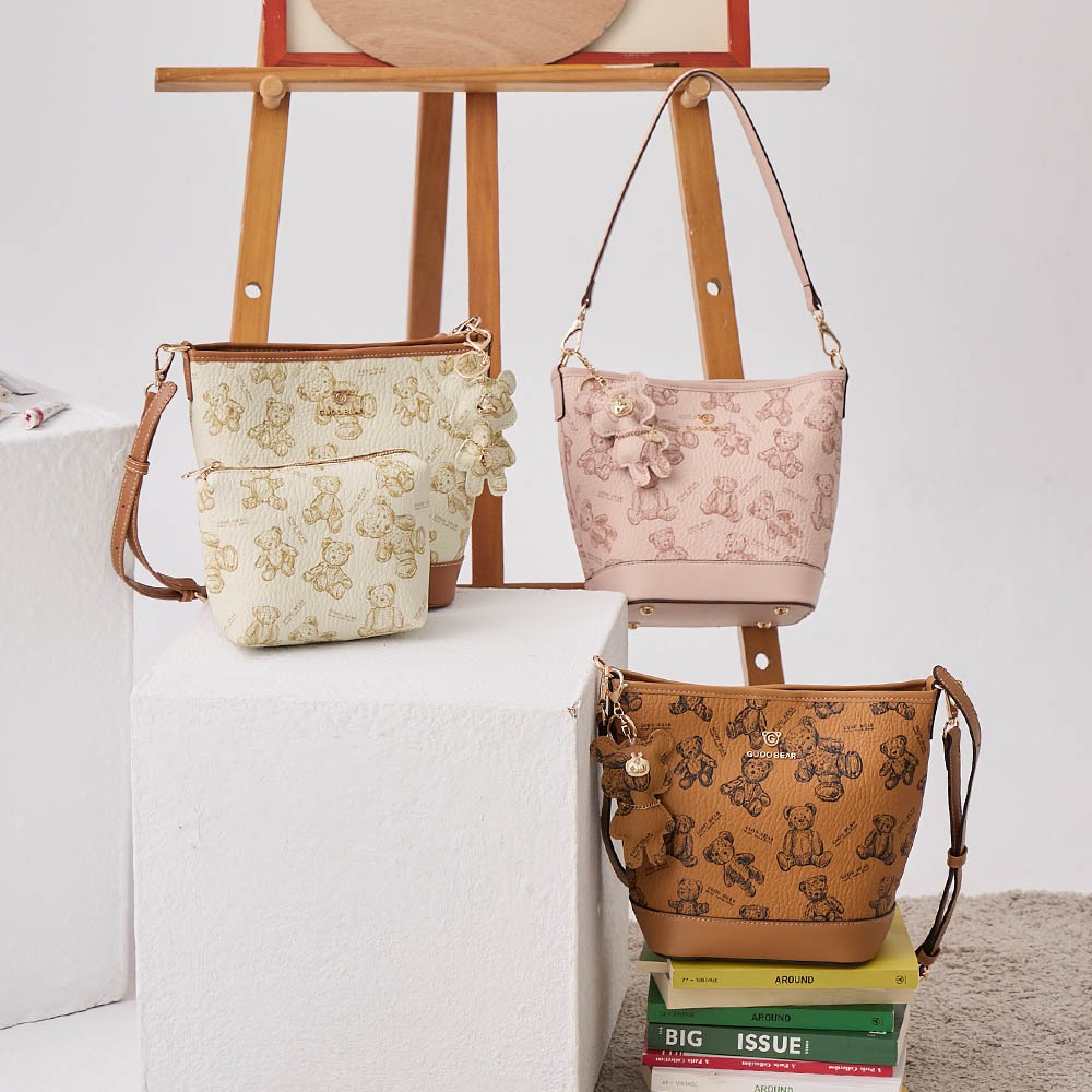 天藍小舖-GUOO BEAR手繪小熊肩背水桶包中包-共3色-$1380【A15153128】土黃|米白|粉色天藍小舖 SkyBlue