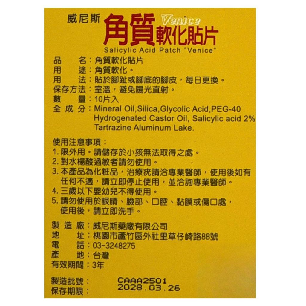 威尼斯 角質軟化貼片10片/盒 【仁仁藥局】三箭角質軟化貼片威尼斯角質軟化貼片10片/盒|三箭角質軟化貼片10片/盒Foot Care仁仁藥局線上購物