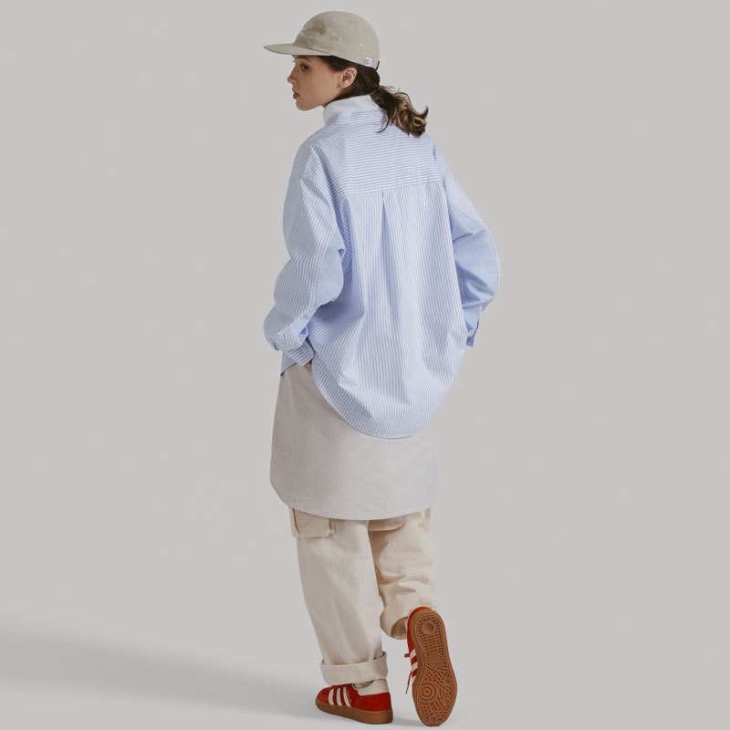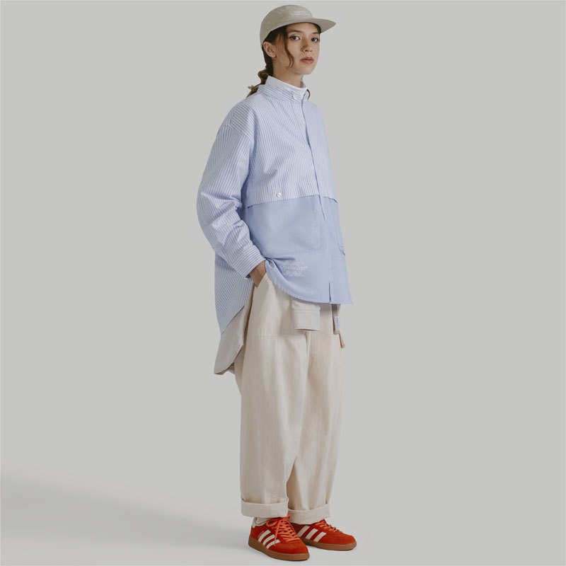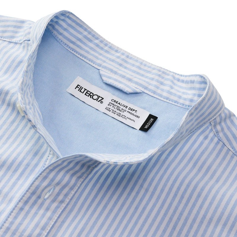 FILTER017 OXFORD SPLICED BAND COLLAR SHIRT 牛津拼接 立領襯衫 (藍色)