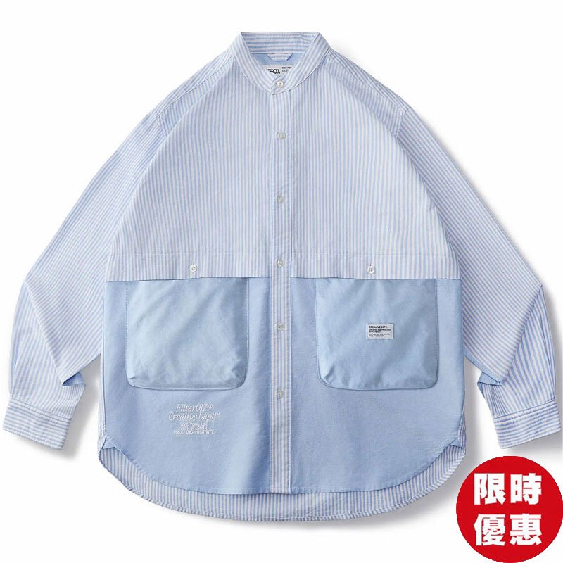 FILTER017 OXFORD SPLICED BAND COLLAR SHIRT 牛津拼接 立領襯衫 (藍色)藍色,S|藍色,M|藍色,L|藍色,XLShirts化學原宿 Chemistry