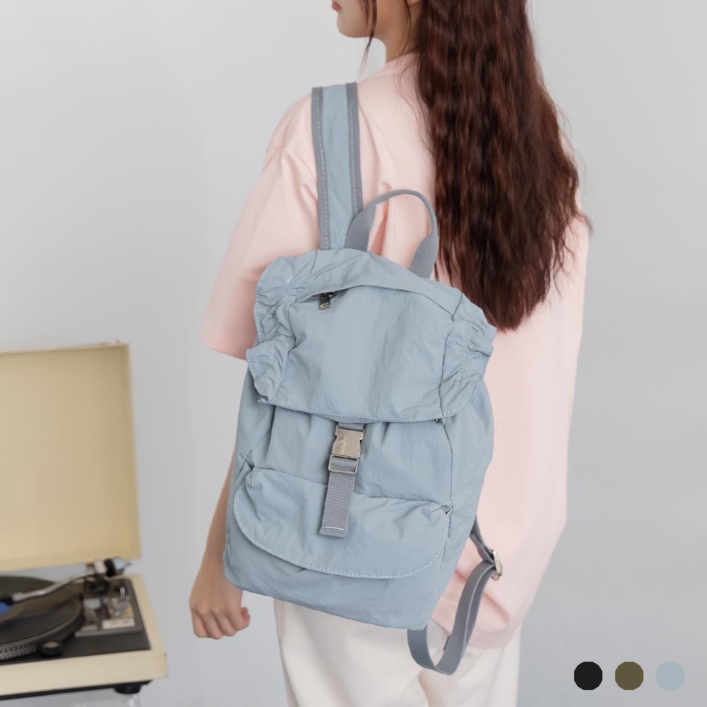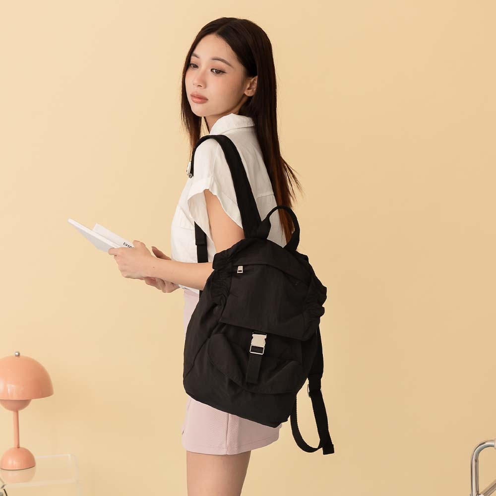 天藍小舖-柔光少女插釦後背包-共4色-A12122299黑色|綠色|藍色|卡其天藍小舖 SkyBlue