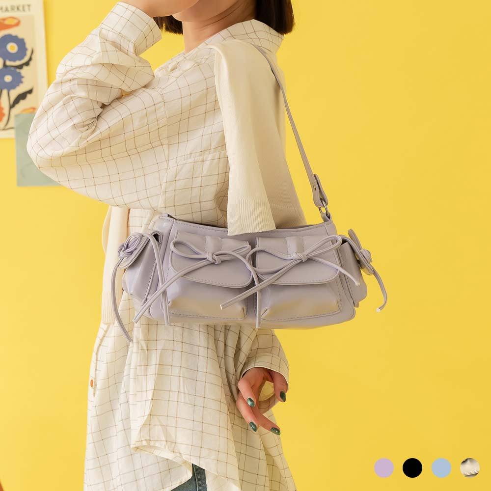 天藍小舖-Y2K蝴蝶結肩背新月包-共4色-A17175062藍色|紫色|黑色|銀色天藍小舖 SkyBlue