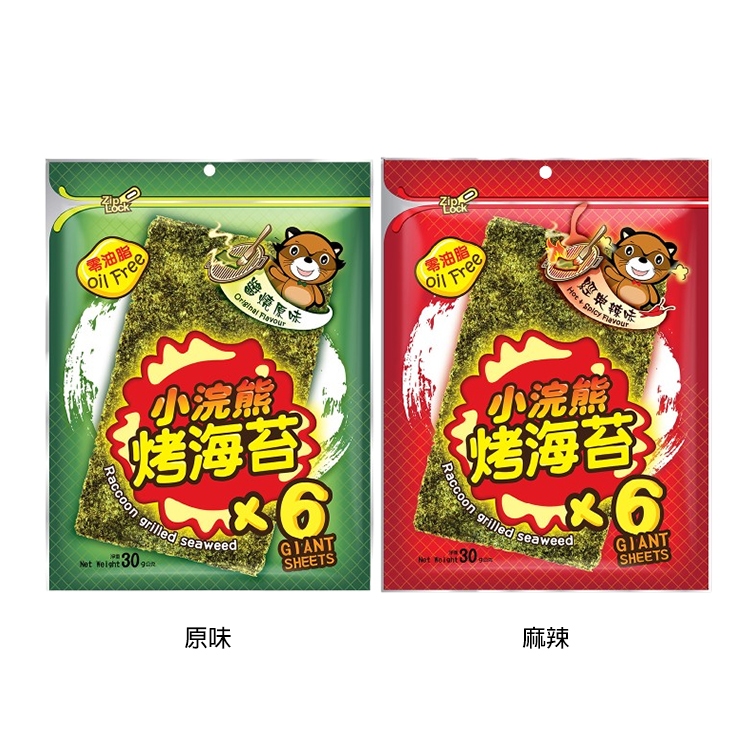小浣熊 烤海苔(30g) 醬燒原味 經典辣味 泰國 海苔 海苔片 海苔捲 零食 團購 美食【小三美日】D820383 !原味|麻辣Seaweed小三美日