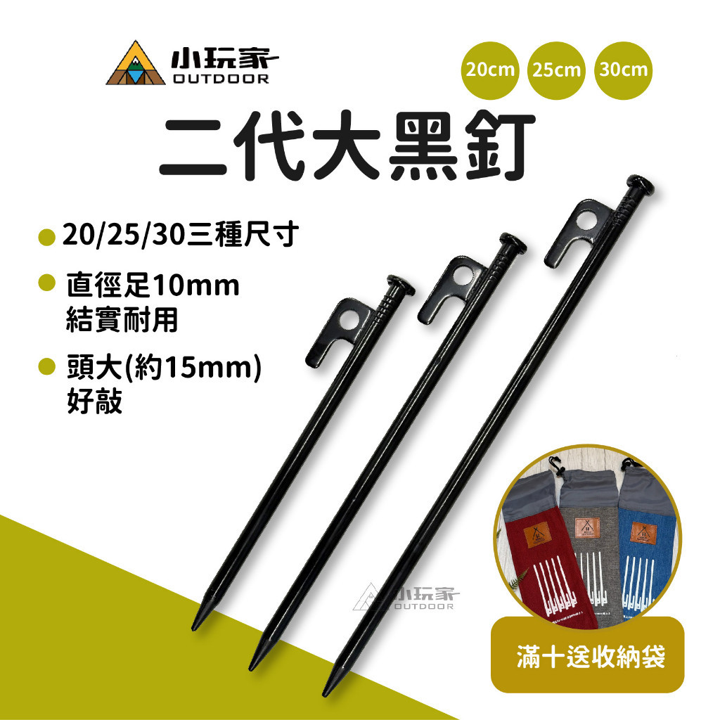 二代大黑釘 足10mm 營釘 黑釘 露營釘 帳篷 炊事帳 天幕 10入送收納袋30cm營釘袋(單袋子)|20cm大黑釘|25cm大黑釘|30cm大黑釘Camping & Hiking小玩家露營生活旗艦館
