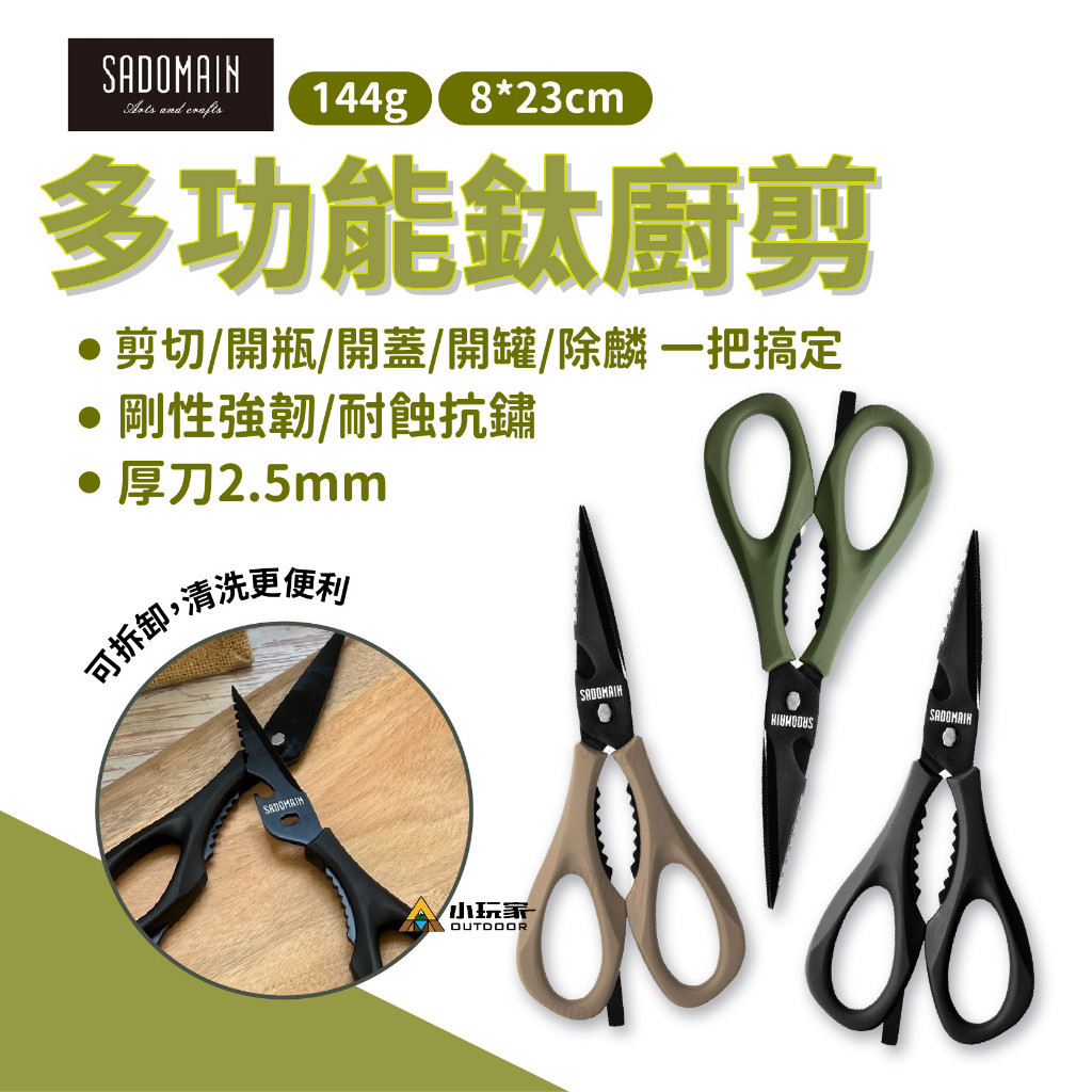 SADOMAIN 仙德曼 多功能鈦廚剪 露營剪刀 萬用剪刀 食物剪 廚房剪刀 剪刀 料理剪刀黑色|軍綠|沙色Camping & Hiking小玩家露營生活旗艦館