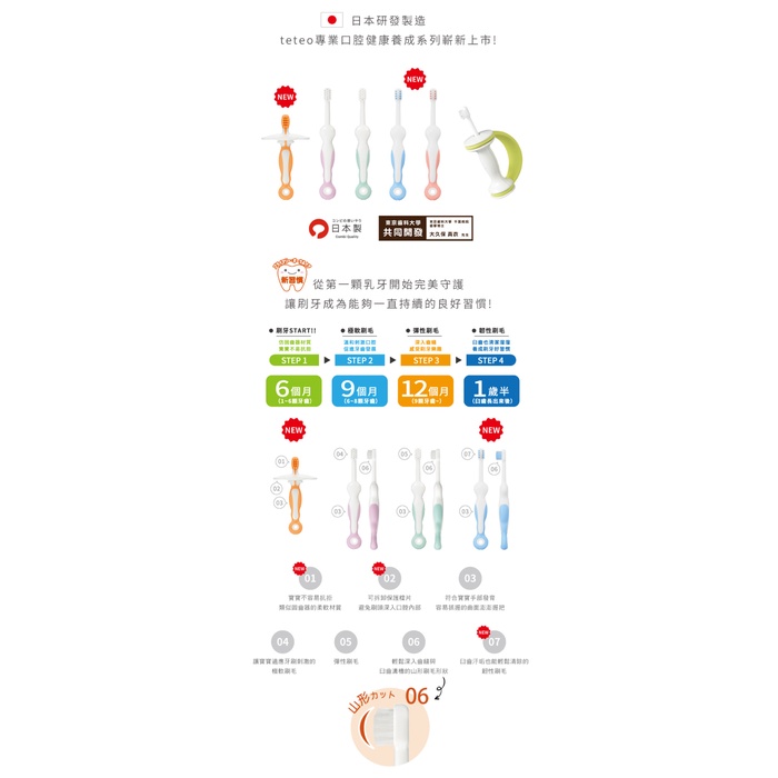 【Combi】Teteo 第四階段 刷牙訓練器|臼齒長出後|18個月|日本製|嬰兒牙刷天藍(2入裝)|粉桃(2入裝)Baby Oral Care日本Combi│REGASSA官方旗艦館