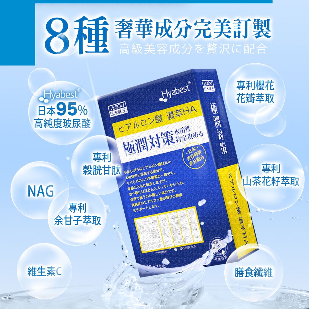 日本味王 極潤對策 高濃度玻尿酸膠囊30粒/盒【官方直營店】(口服玻尿酸/余甘子/股胱甘肽)日本味王 極潤對策 高濃度玻尿酸膠囊30粒/盒【官方直營店】(口服玻尿酸/余甘子/股胱甘肽)Beauty Supplements日本味王 官方旗艦店 |消化保健專家 |葉黃素一級棒