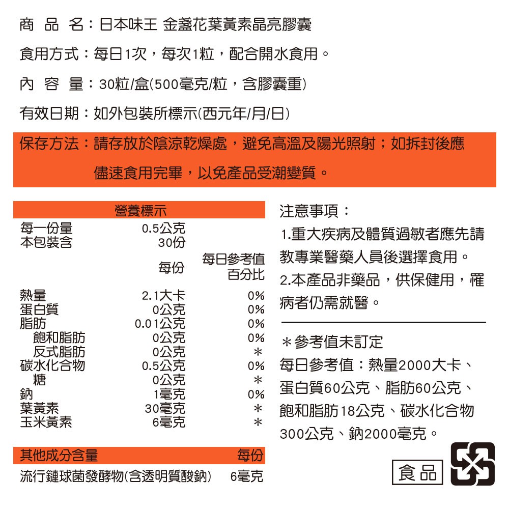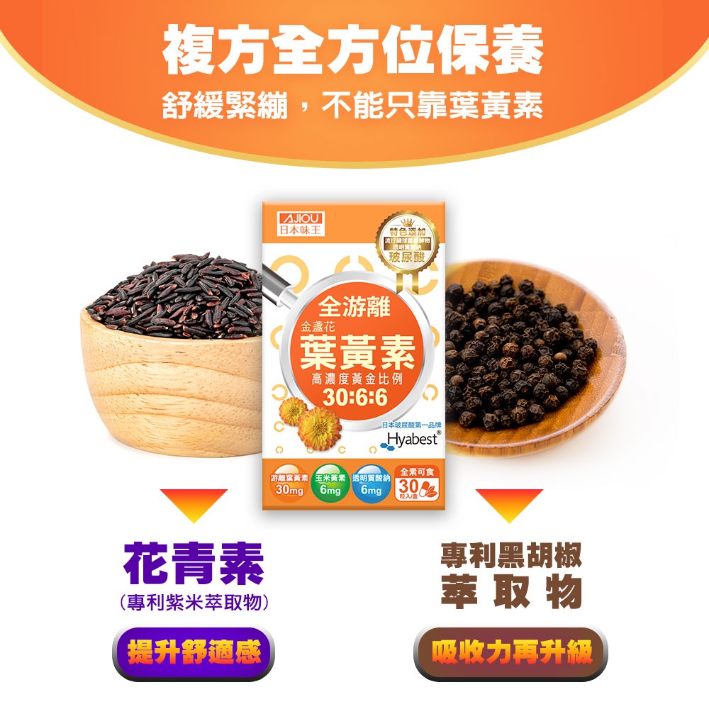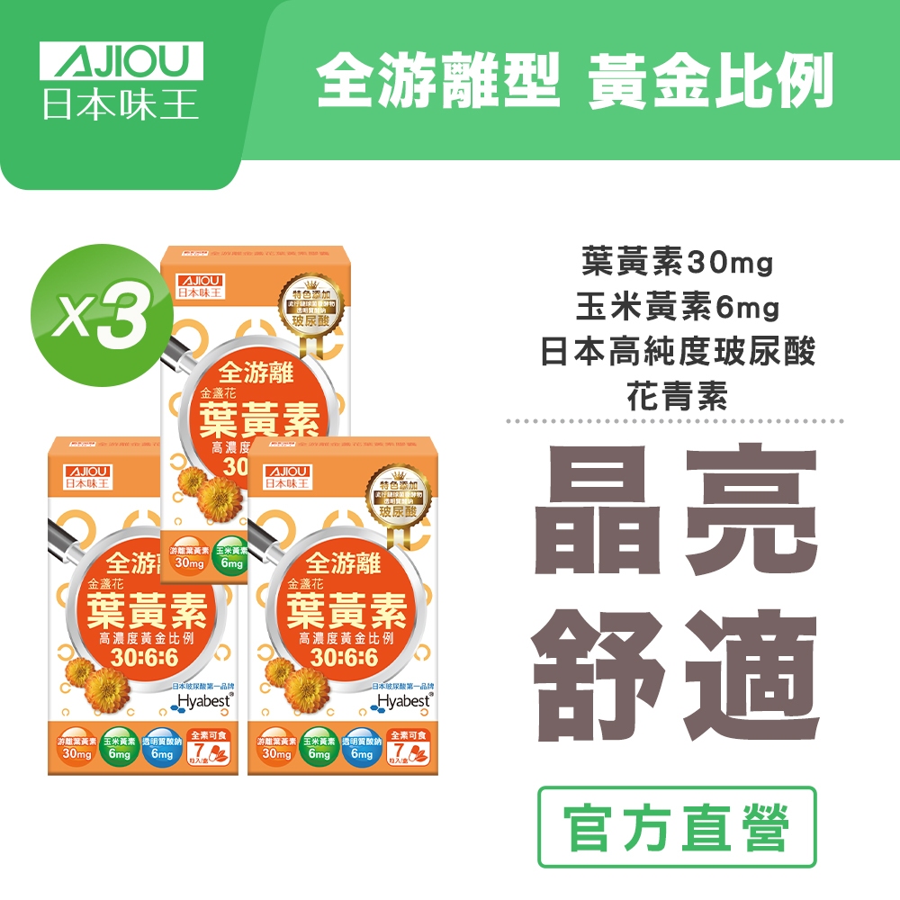 日本味王 30:6:6高濃度金盞花葉黃素晶亮膠囊x3盒【官方直營店】 (30粒/盒)(全素食、游離型)30:6:6金盞花晶亮膠囊X3Well Being日本味王 官方旗艦店 |消化保健專家 |葉黃素一級棒