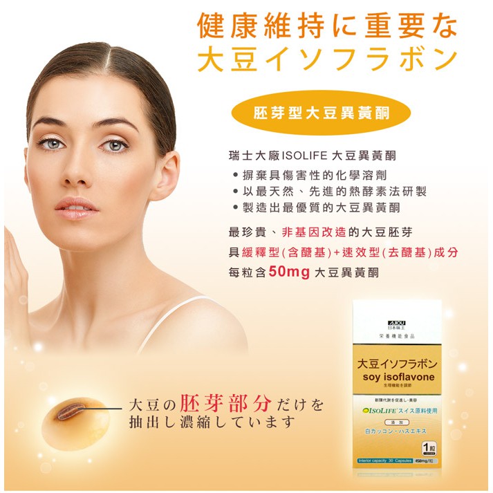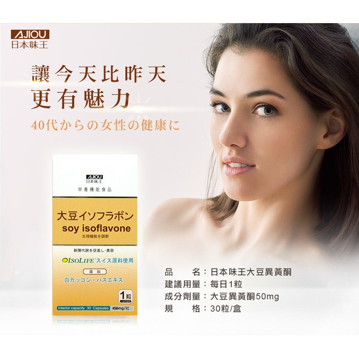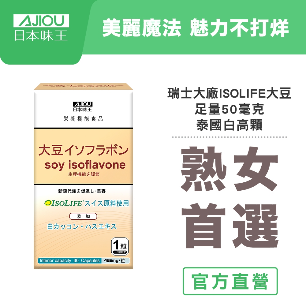 日本味王 大豆異黃酮30粒/瓶【官方直營店】(多件更優惠)日本味王 大豆異黃酮30粒/瓶【官方直營店】(多件更優惠)Beauty Supplements日本味王 官方旗艦店 |消化保健專家 |葉黃素一級棒