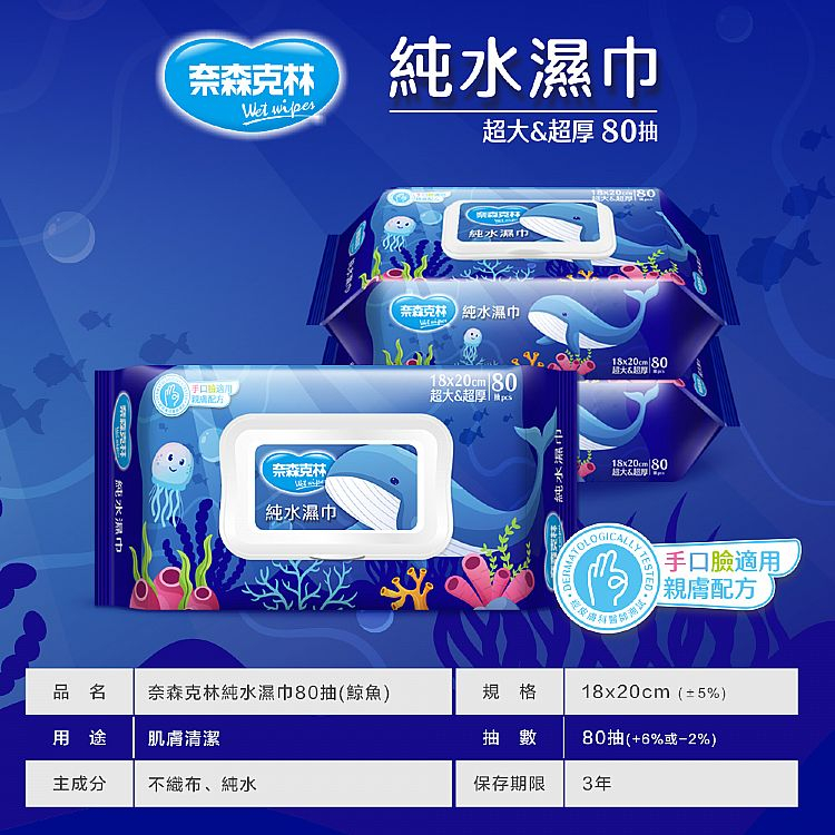 奈森克林 純水濕巾(超大&超厚)手口臉適用(掀蓋80抽) 【小三美日】DS014111單一Wipes小三美日