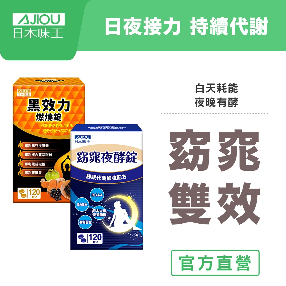 日本味王 日夜窈窕組-黑效力燃燒錠(120粒/瓶)+ 窈窕夜酵錠(120粒/瓶)黑效力燃燒錠*1+ 窈窕夜酵素*1Well Being日本味王 官方旗艦店 |消化保健專家 |葉黃素一級棒