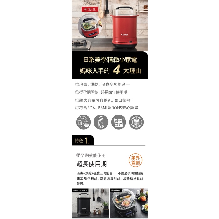 【Combi】(原廠福利品) GEN3 消毒溫食多用鍋|消毒鍋|消毒+烘乾+溫食赤焰紅|金緻白|曜石黑|寧靜藍Bottle-feeding日本Combi│REGASSA官方旗艦館