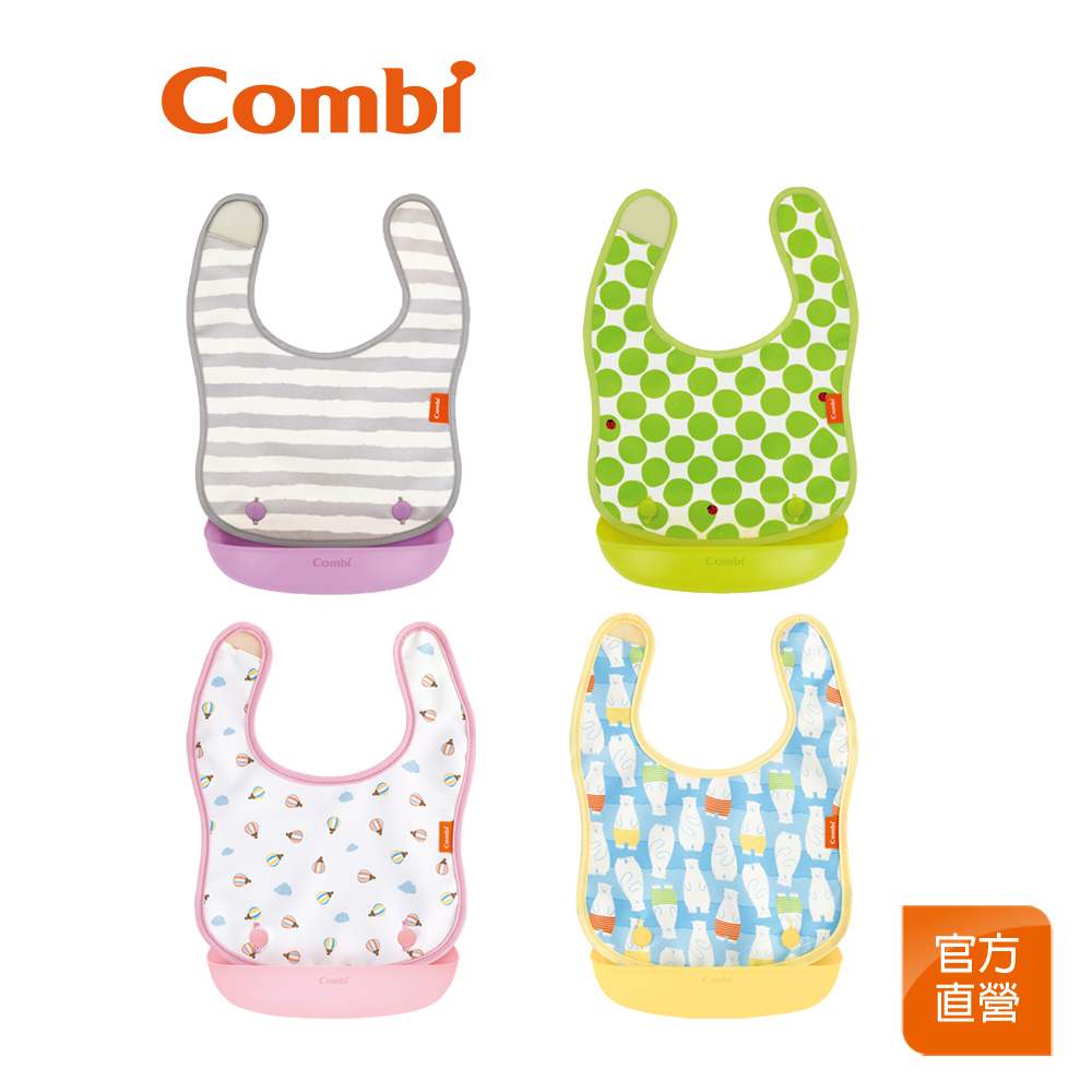 【Combi】新防污口袋圍兜|日本製北極熊-藍|熱氣球-粉|紫斑馬|綠瓢蟲Bibs日本Combi│REGASSA官方旗艦館