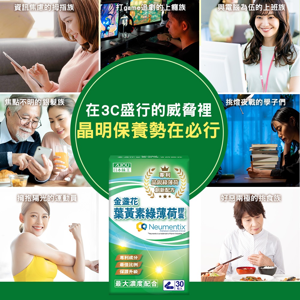 日本味王 專利金盞花葉黃素綠薄荷膠囊30粒(游離型/黃金比例/玉米黃素/蝦紅素/花青素)【官方直營店】日本味王 專利金盞花葉黃素綠薄荷膠囊30粒(游離型/黃金比例/玉米黃素/蝦紅素/花青素)【官方直營店】Well Being日本味王 官方旗艦店 |消化保健專家 |葉黃素一級棒