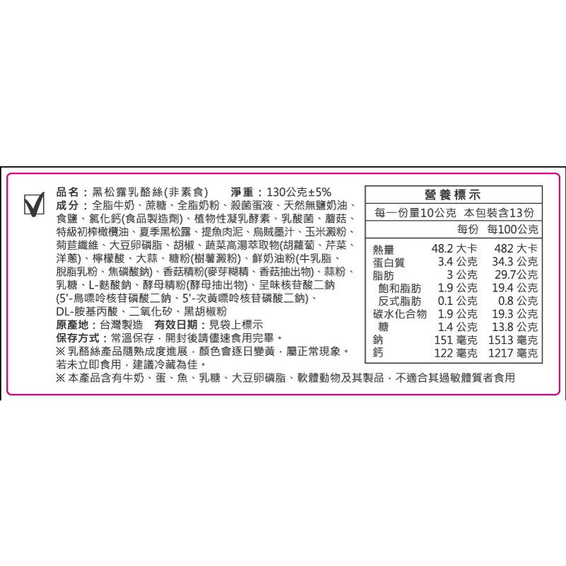 【六月初一】黑松露乳酪絲家庭分享包 (130公克±5%)【六月初一】黑松露乳酪絲家庭分享包 (130公克±5%)Others六月初一8結蛋捲