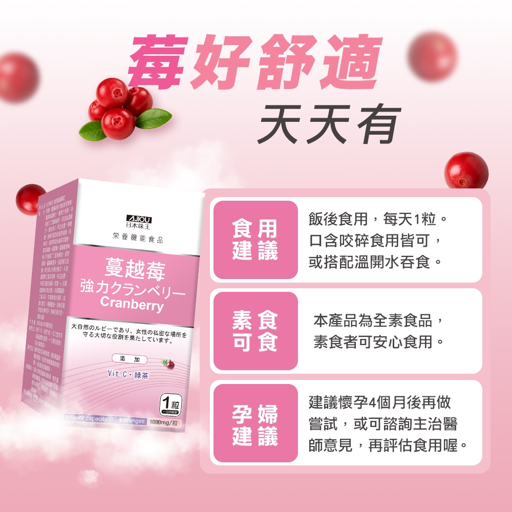 日本味王 蔓越莓強效錠(30粒/盒)【官方直營店】多件優惠 (私密呵護/清爽舒適/全素食/維生素C) 洛神花 低熱量日本味王 蔓越莓強效錠(30粒/盒)【官方直營店】多件優惠 (私密呵護/清爽舒適/全素食/維生素C) 洛神花 低熱量Beauty Supplements日本味王 官方旗艦店 |消化保健專家 |葉黃素一級棒