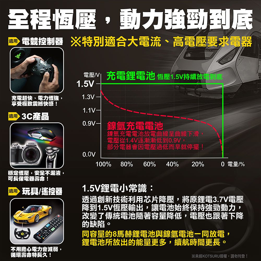【8馬赫】3號/AA 恆壓可充式 1.5V鋰電池 全新特大能量 3700mWh 8入【8馬赫】3號/AA 恆壓可充式 1.5V鋰電池 全新特大能量 3700mWh 8入日本KOTSURU-便利速達