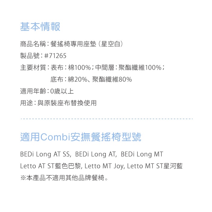 【Combi】餐搖椅專用 坐墊布|星光白|(只有坐墊布,不包含餐搖椅)|座墊布【Combi】餐搖椅專用 坐墊布|星光白|(只有坐墊布,不包含餐搖椅)|座墊布Highchairs & Booster Seats日本Combi│REGASSA官方旗艦館