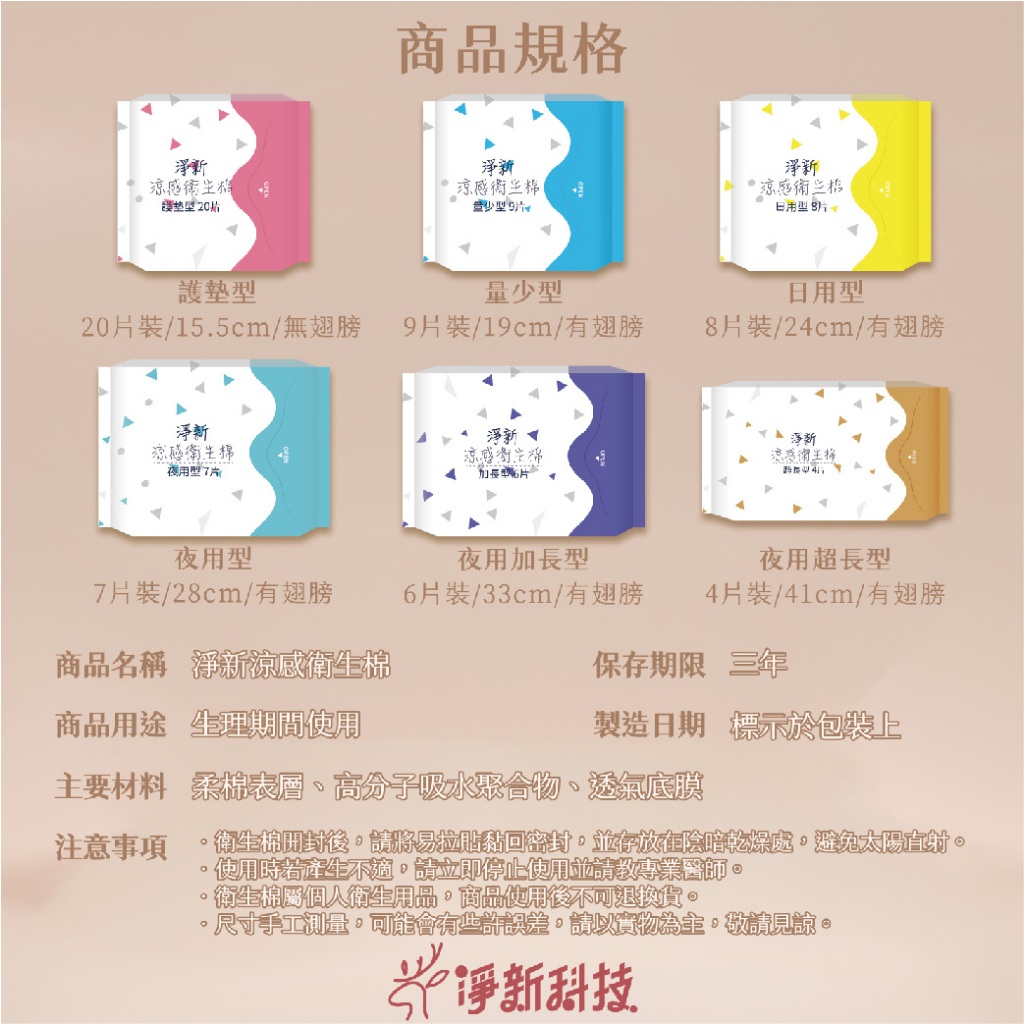 淨新 涼感衛生棉∣15.5cm 19cm 24cm 28cm 33cm 41cm∣護墊x量少x日用x夜用x加長x超長夜用加長型 33cm-紫色|夜用超長型 41cm-咖啡色|護墊型 15.5cm-粉紅色|量少型 19cm-藍色|日用型 24cm-黃色|夜用型 28cm-湖綠色Feminine Care日本商 魔娜歌|乳清蛋白 保健食品