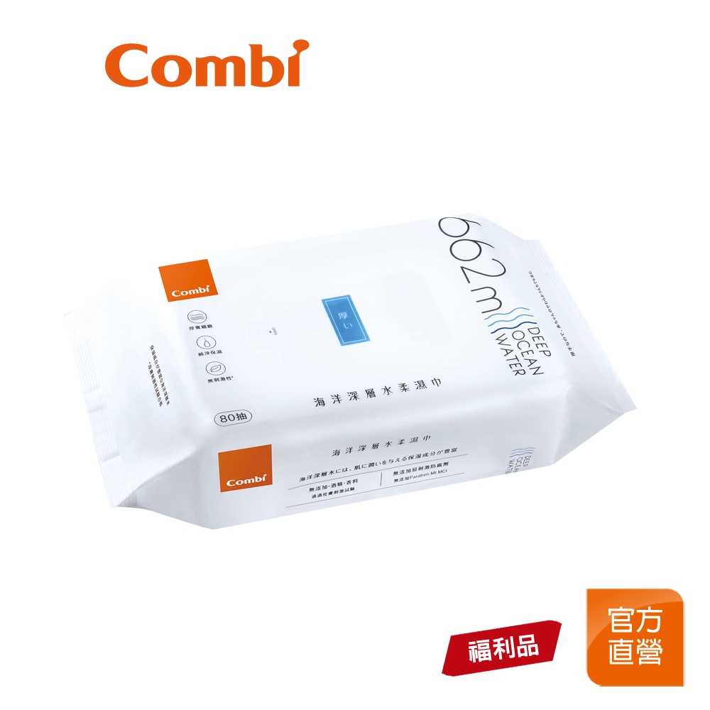 【Combi】(原廠即期品) 海洋深層水 柔濕巾 80抽(1包)|大濕紙巾|效期至少3個月|原廠福利品|限超商取貨