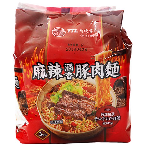 台灣菸酒 麻辣酒香豚肉麵(200gx3包/袋裝)【小三美日】D023347 泡麵單一規格Instant Noodles小三美日