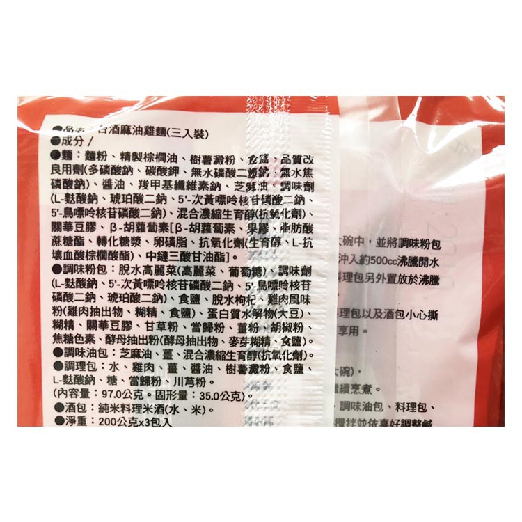 台灣菸酒 麻油雞麵(200gx3包/袋裝) 泡麵 團購 台酒麻油雞麵 台酒泡麵 進補 宵夜【小三美日】 D109274單一規格Noodles小三美日