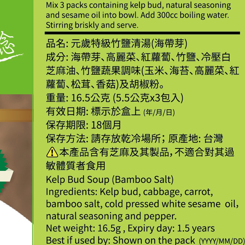 【元歲本舖】(純素)特級竹鹽清湯(海帶芽) 3入/盒_超取請注意限重!【元歲本舖】(純素)特級竹鹽清湯(海帶芽) 3入/盒_超取請注意限重!Stock, Gravy & Instant Soup元歲本舖