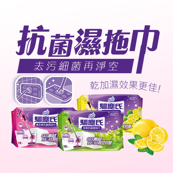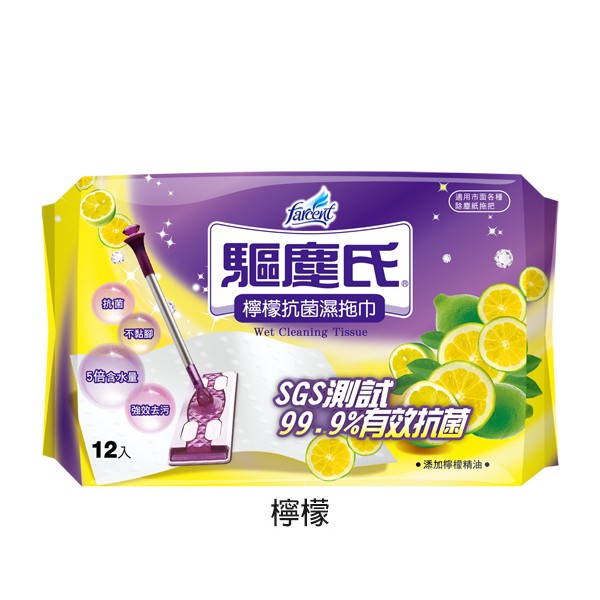 驅塵氏 抗菌濕拖巾(12張) 檸檬/薰衣草/茶樹 打掃 拖地 清潔 抗菌 除塵紙 拖把濕巾 【小三美日】D070604檸檬|薰衣草|茶樹Others小三美日