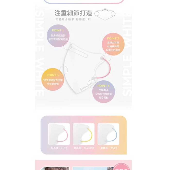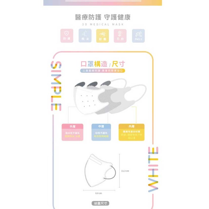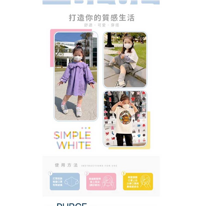 PURGE 普潔 幼童款醫用3D立體口罩(20入)簡白系列 款式可選 小朋友口罩 柔軟耳帶【小三美日】DS010999藍耳繩|黃耳繩|粉耳繩Medical Gloves & Masks小三美日