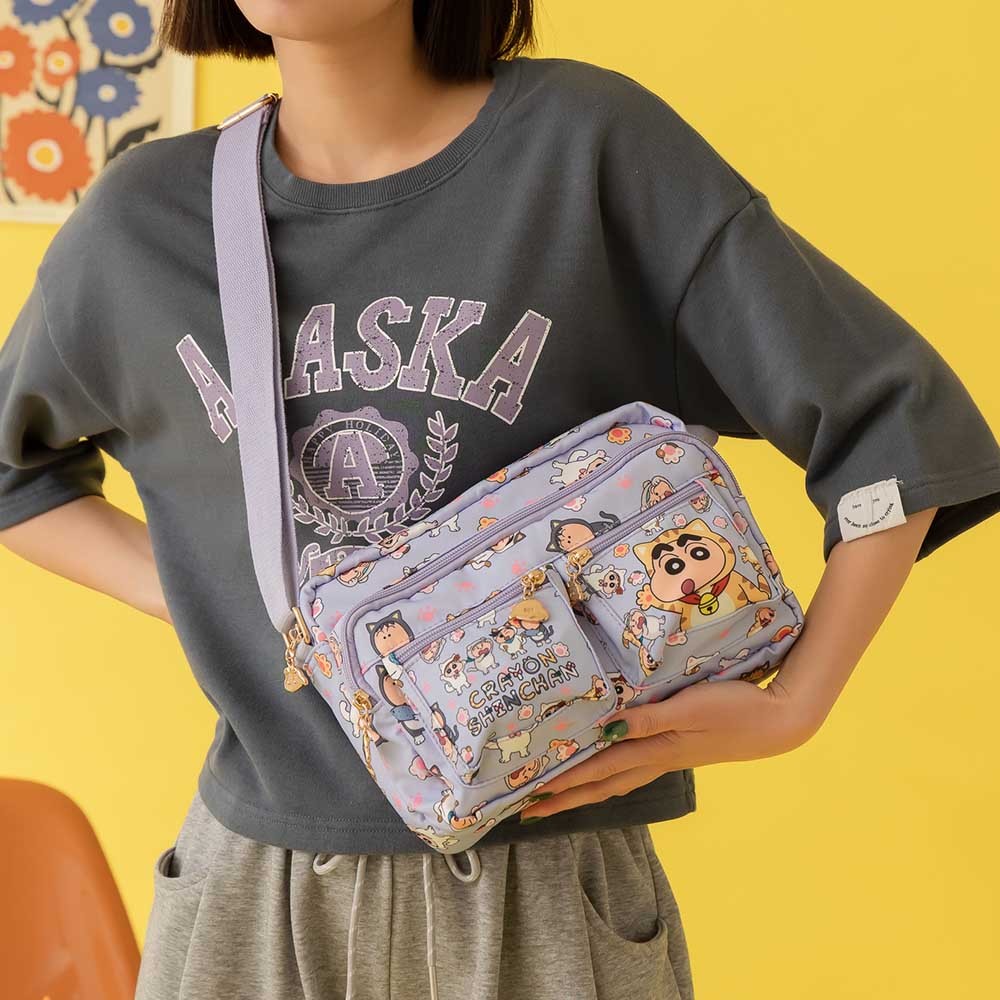 天藍小舖-蠟筆小新俏皮萌獸尼龍斜背包-單1款-A17175078紫色天藍小舖 SkyBlue
