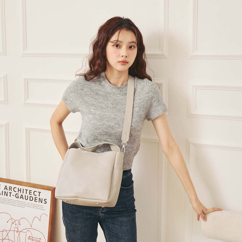 天藍小舖-簡約荔枝紋手提/肩背包中包-共4色-A15153147灰色|米白|黑色|藍色天藍小舖 SkyBlue