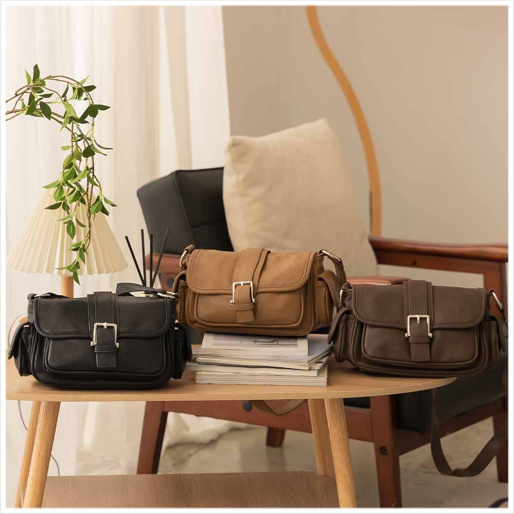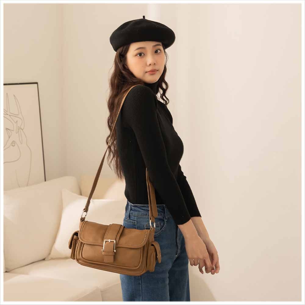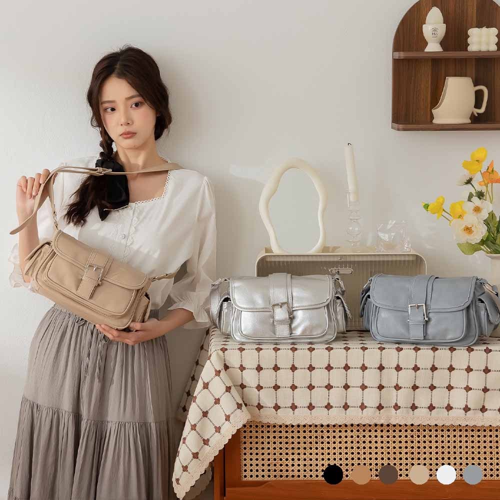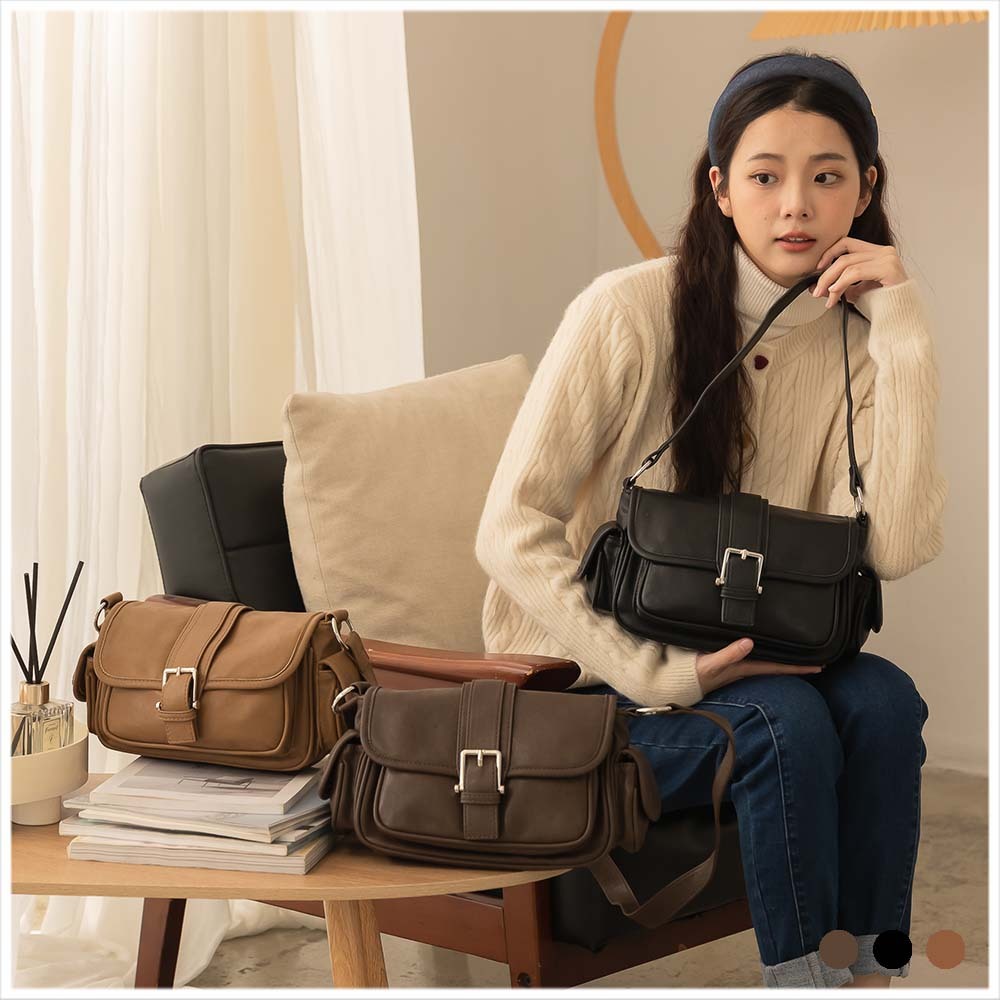 天藍小舖-復古皮帶釦肩背/斜背包-共6色-A17175015