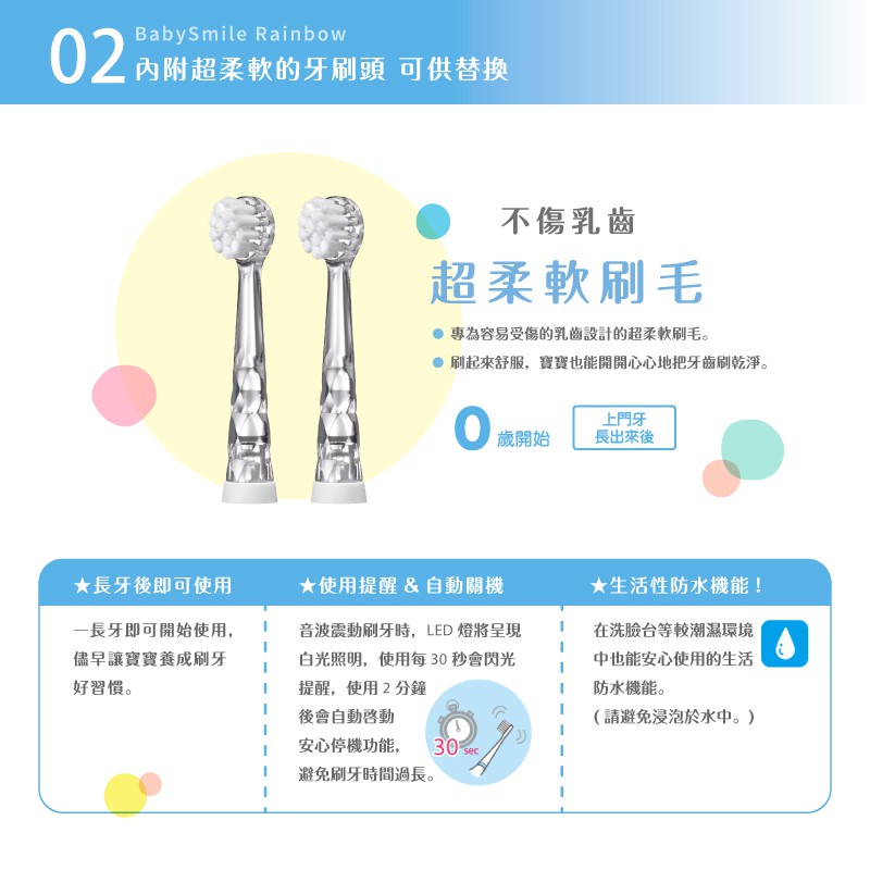 【日本BabySmile】 S-204兒童電動牙刷 電動牙刷 牙刷 刷頭 電動刷頭 兒童牙刷 軟毛牙刷 牙刷頭 日本牙刷【S-204藍】電動牙刷+軟毛刷頭x2|【軟毛】刷頭2入/組 (適用年齡0歲)Oral Care日本BabySmile官方旗艦店 兒童電動牙刷 吸鼻器 呼吸監測器