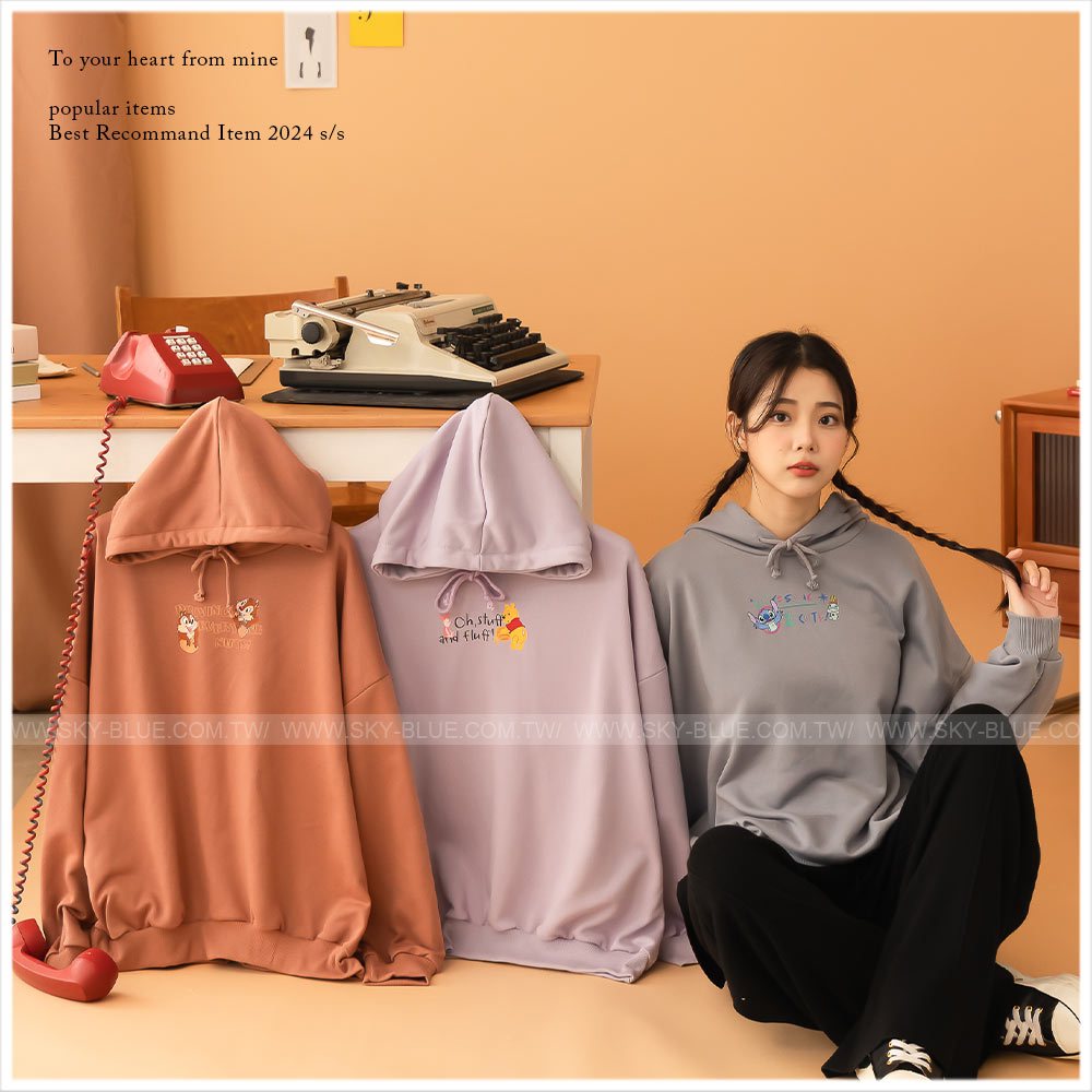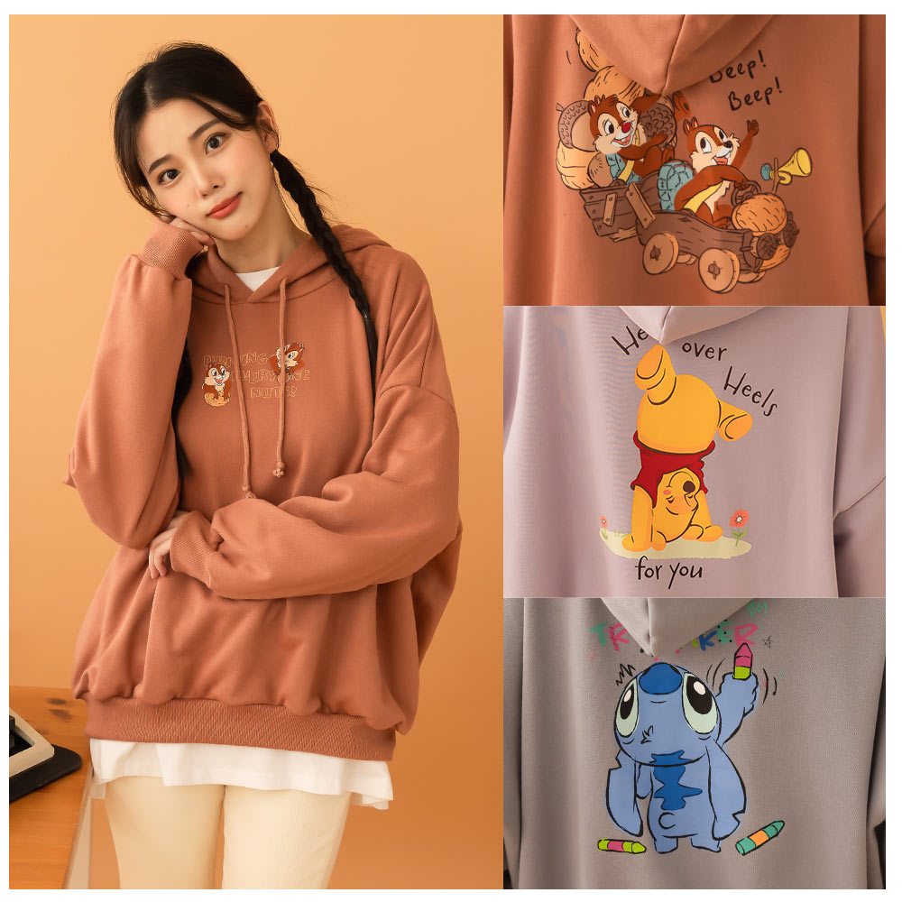 天藍小舖-迪士尼系列開心時刻棉質帽T-共3色-A28280383史迪奇|奇奇蒂蒂|維尼Hoodies天藍小舖 SkyBlue