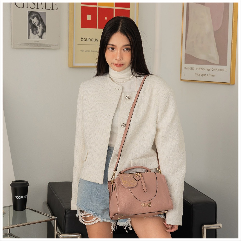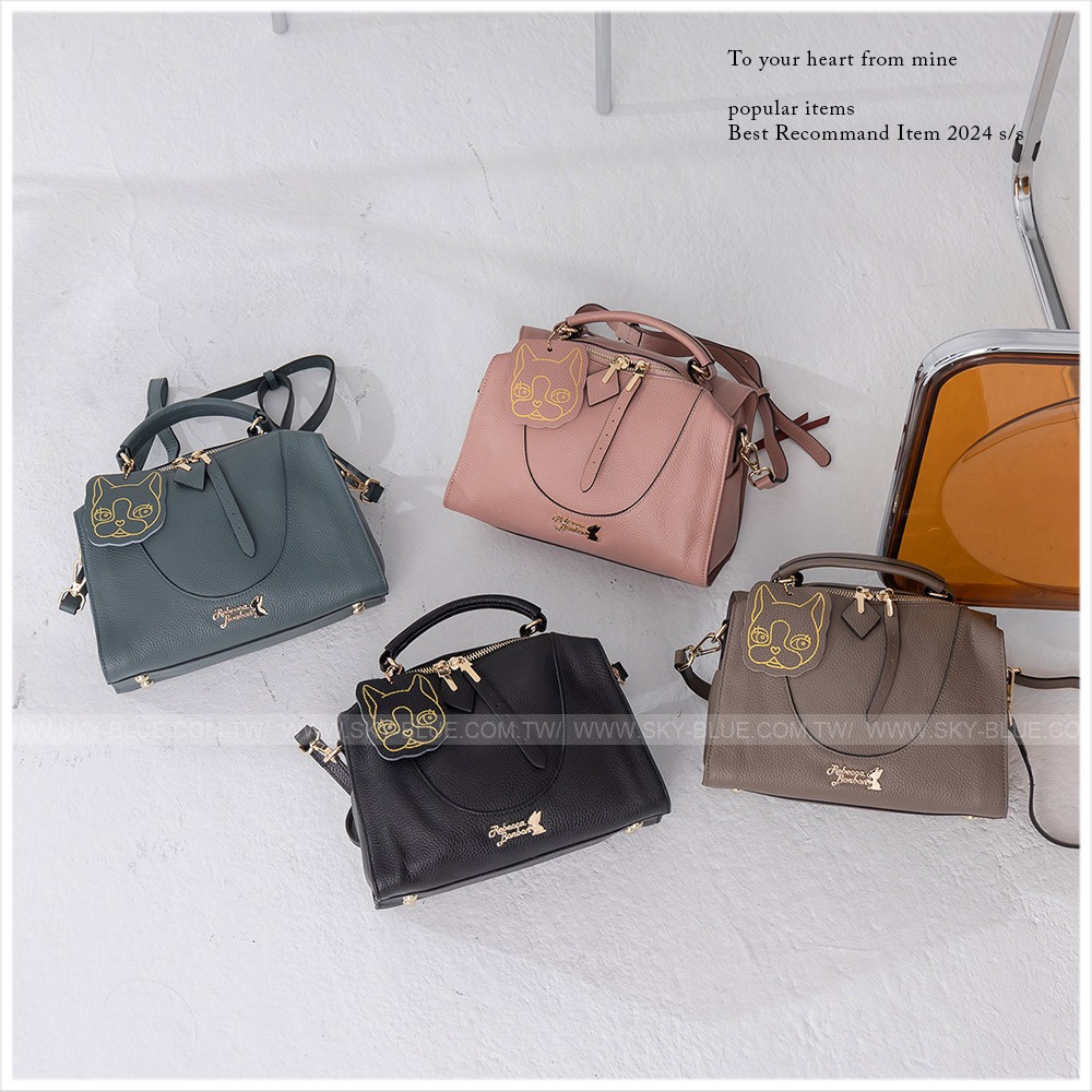 天藍小舖-Rebecca bonbon真皮弧形線條手提/斜背狗頭包-共4色-A03031979粉色|黑色|綠色|灰色天藍小舖 SkyBlue