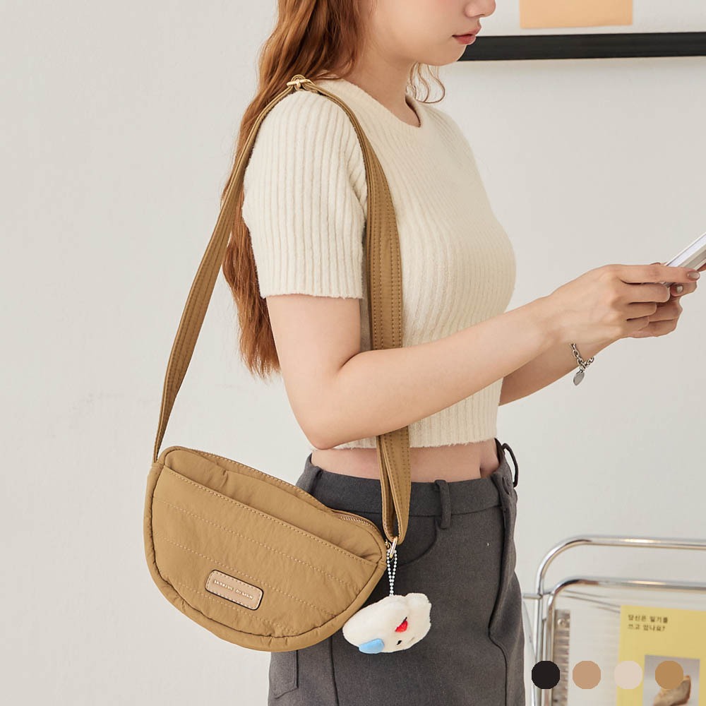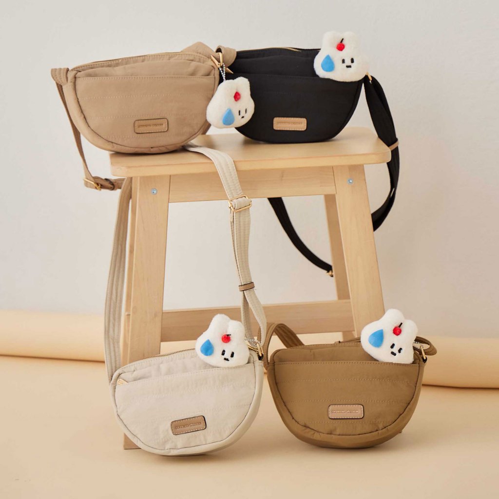 天藍小舖-skyblue自訂雙面造型半圓斜背包-共4色-A17175101米白|黑色|艾綠|米杏天藍小舖 SkyBlue