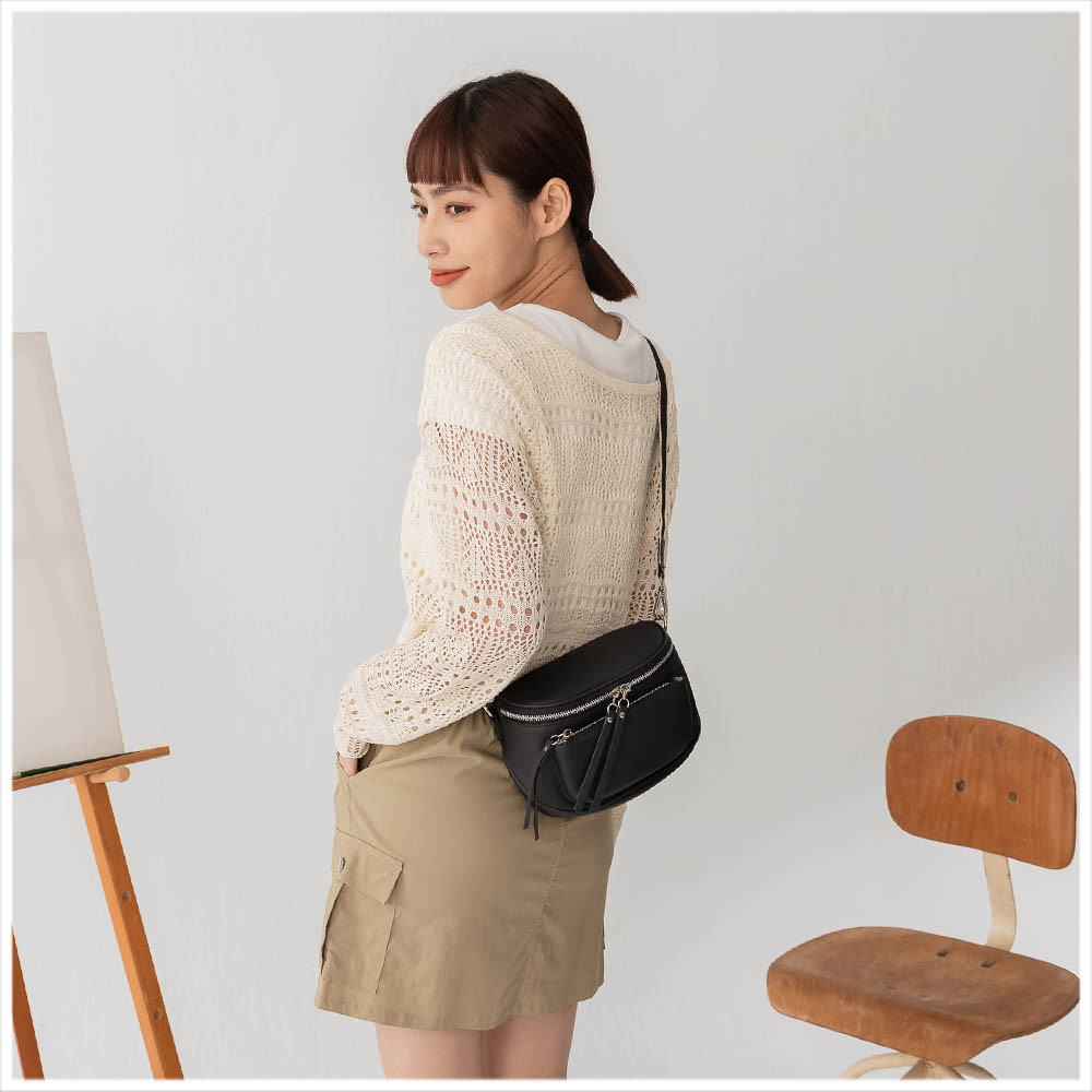 天藍小舖-質感生活真皮胸包/斜背包-共3色-A17174969灰色|黑色|豆沙綠天藍小舖 SkyBlue