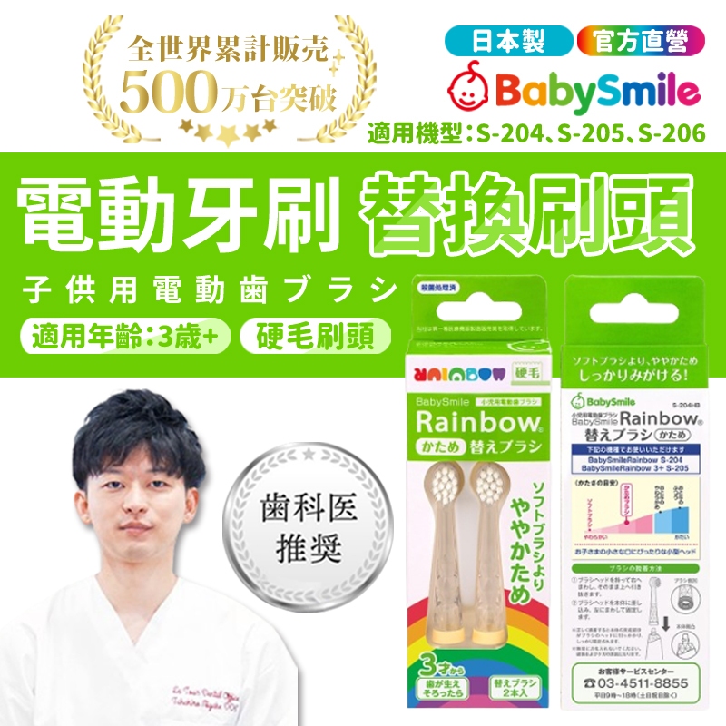 【日本BabySmile】硬毛替換刷頭 牙刷 電動牙刷 兒童牙刷 硬毛牙刷 刷頭 牙刷頭 電動牙刷頭 電動刷頭 日本牙刷【硬毛】替換刷頭1組(2入)Baby Oral Care日本BabySmile官方旗艦店 兒童電動牙刷 吸鼻器 呼吸監測器