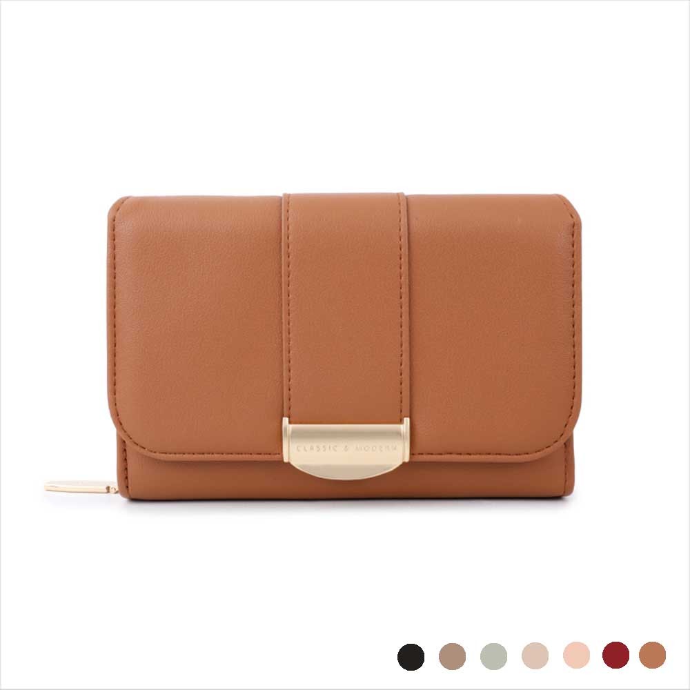 天藍小舖-簡約字母金釦皮革中夾-共7色-A08081821粉色|黑色|綠色|褐色|黃棕|杏色|紅色Bifold & Trifold Wallets天藍小舖 SkyBlue