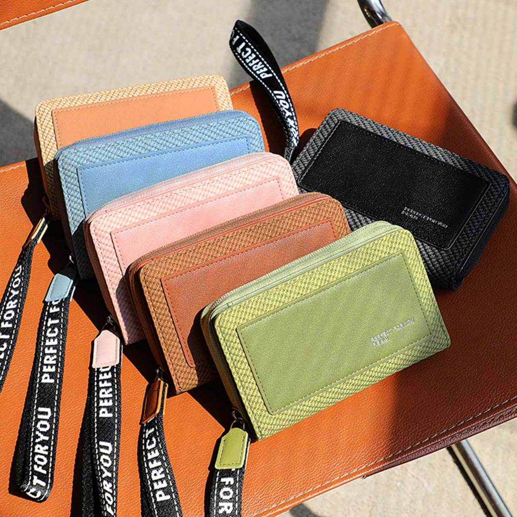 天藍小舖-異材質拼接配色皮革織帶中夾-共6色-A08081860綠色|藍色|杏色|粉色|棕色|黑色Bifold & Trifold Wallets天藍小舖 SkyBlue