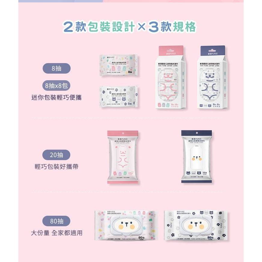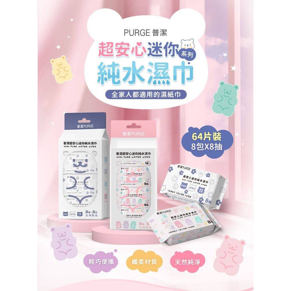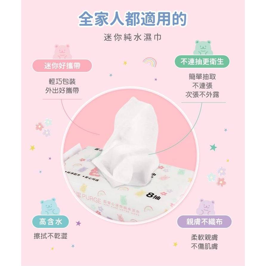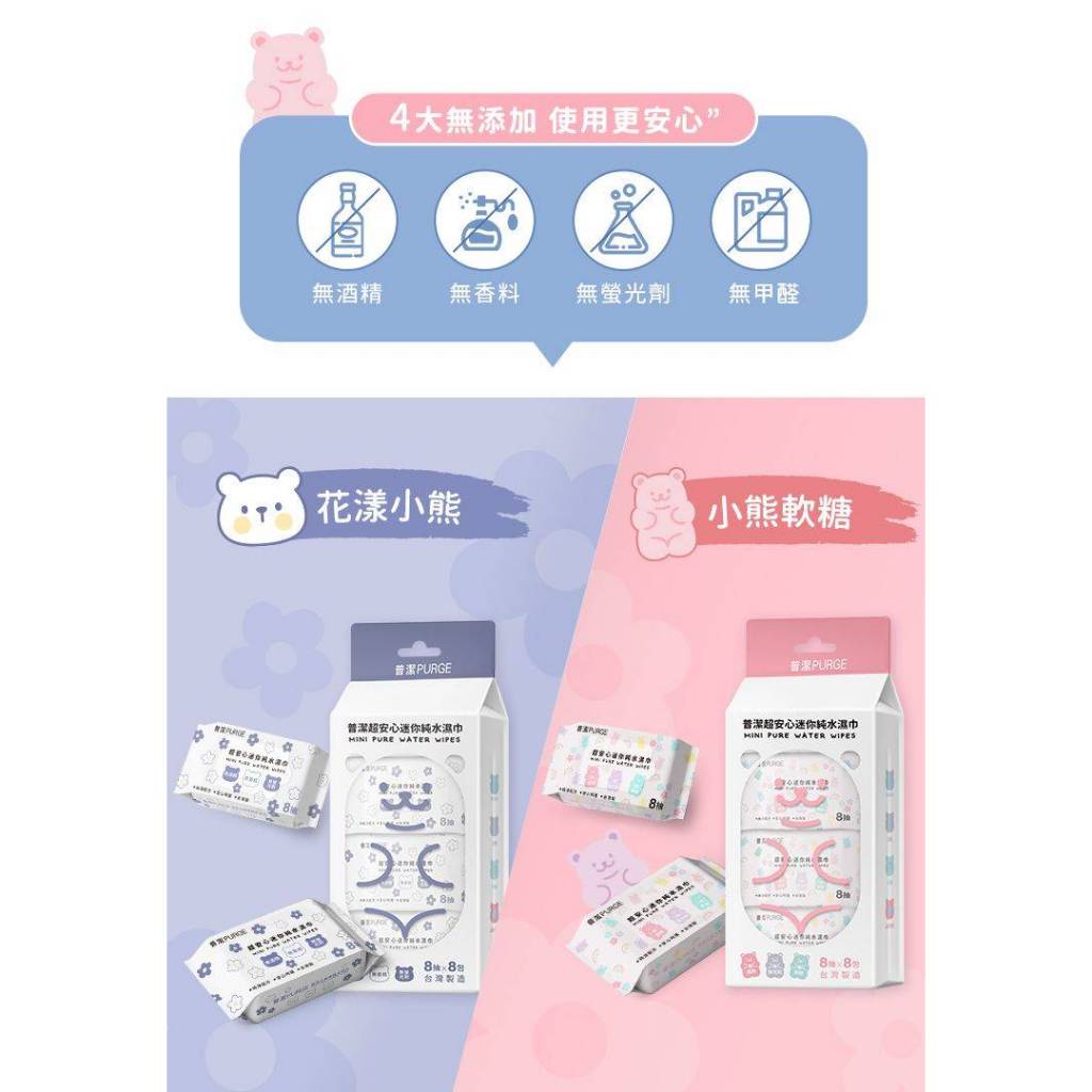 PURGE 普潔 超安心加厚純水濕巾(8抽x8包) 款式可選 濕紙巾 溼紙巾 溼巾 台灣製造【小三美日】DS025377小熊軟糖|花漾小熊Wipes小三美日