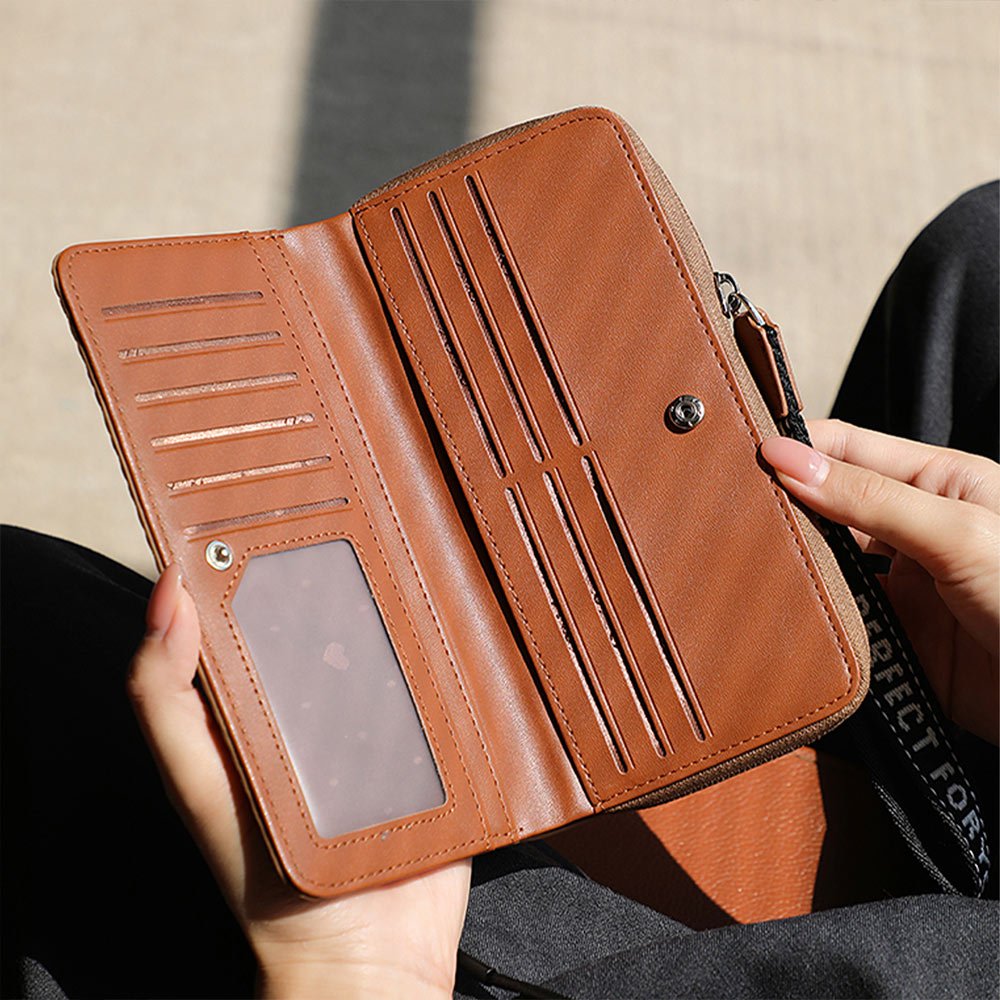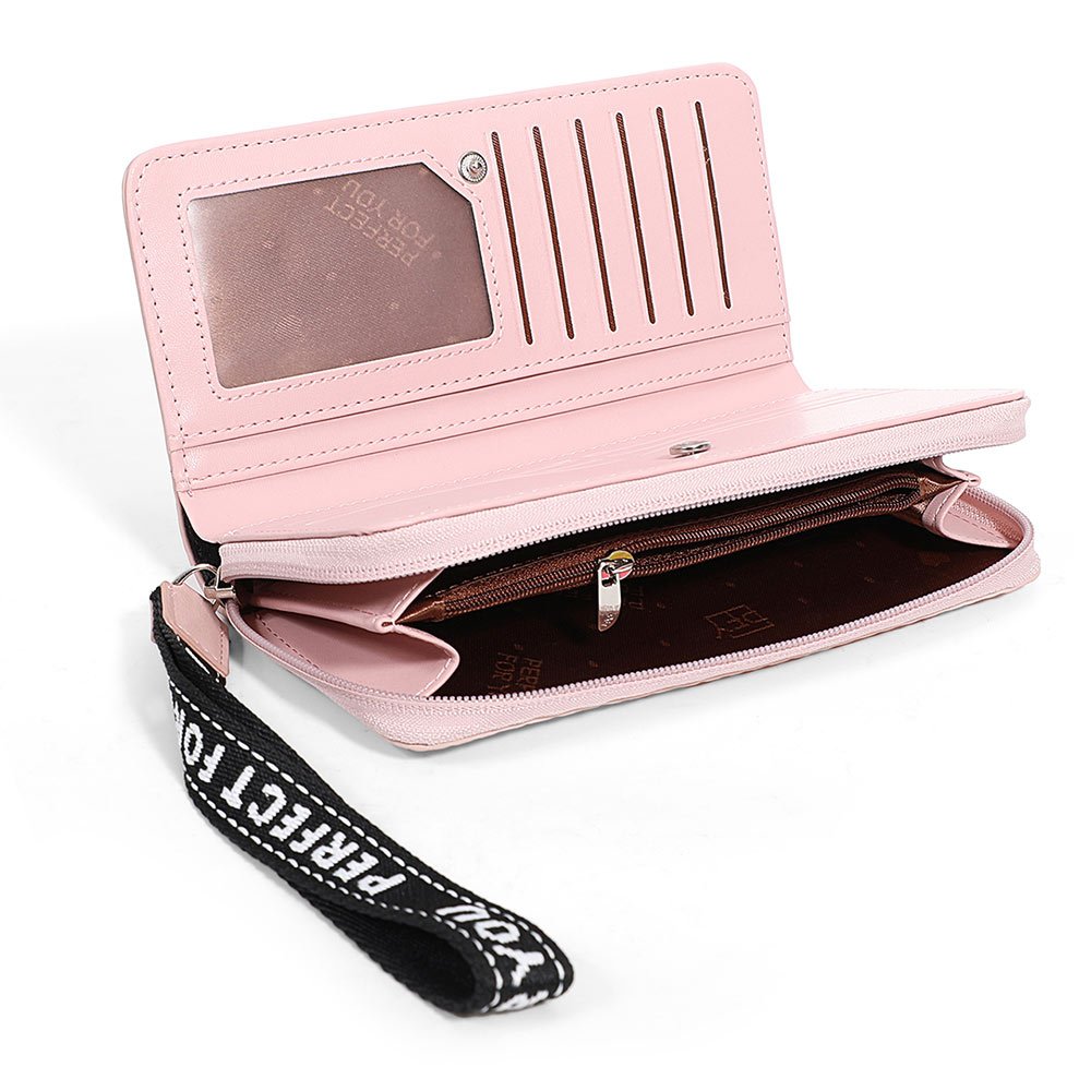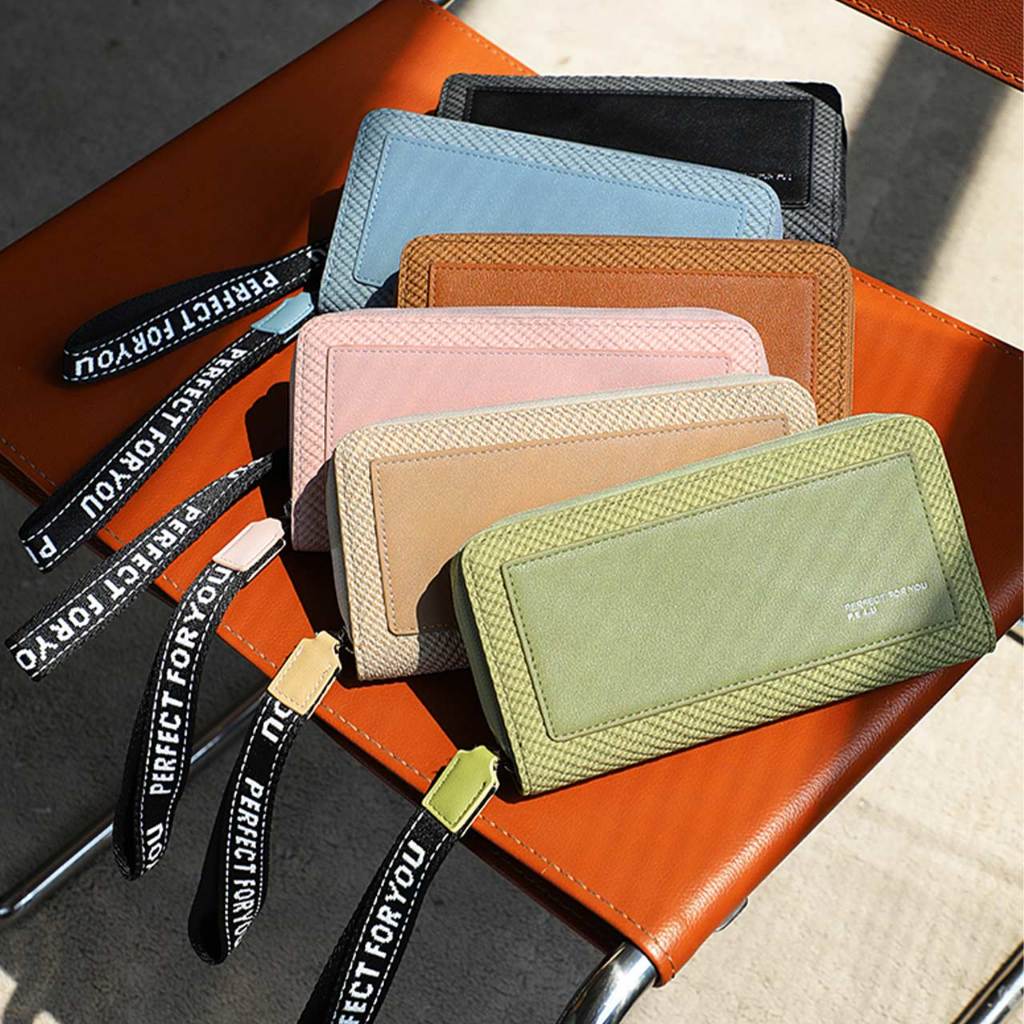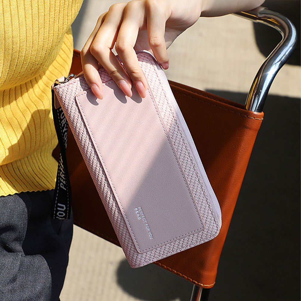 天藍小舖-異材質拼接配色皮革織帶長夾-共6色-A08081859杏色|粉色|棕色|黑色|綠色|藍色Long Wallets天藍小舖 SkyBlue